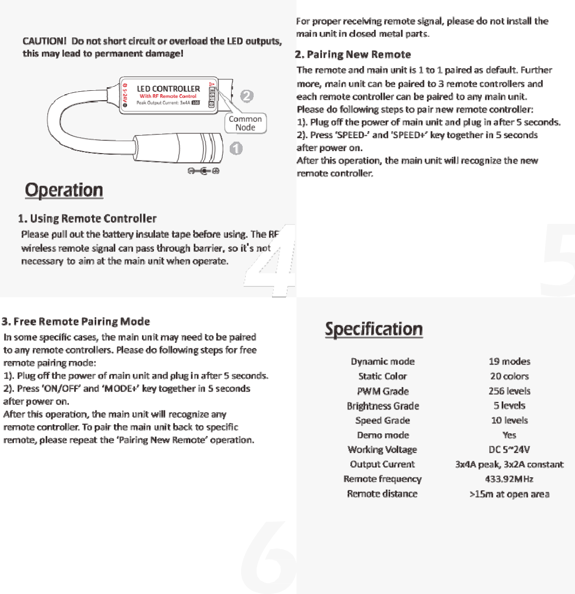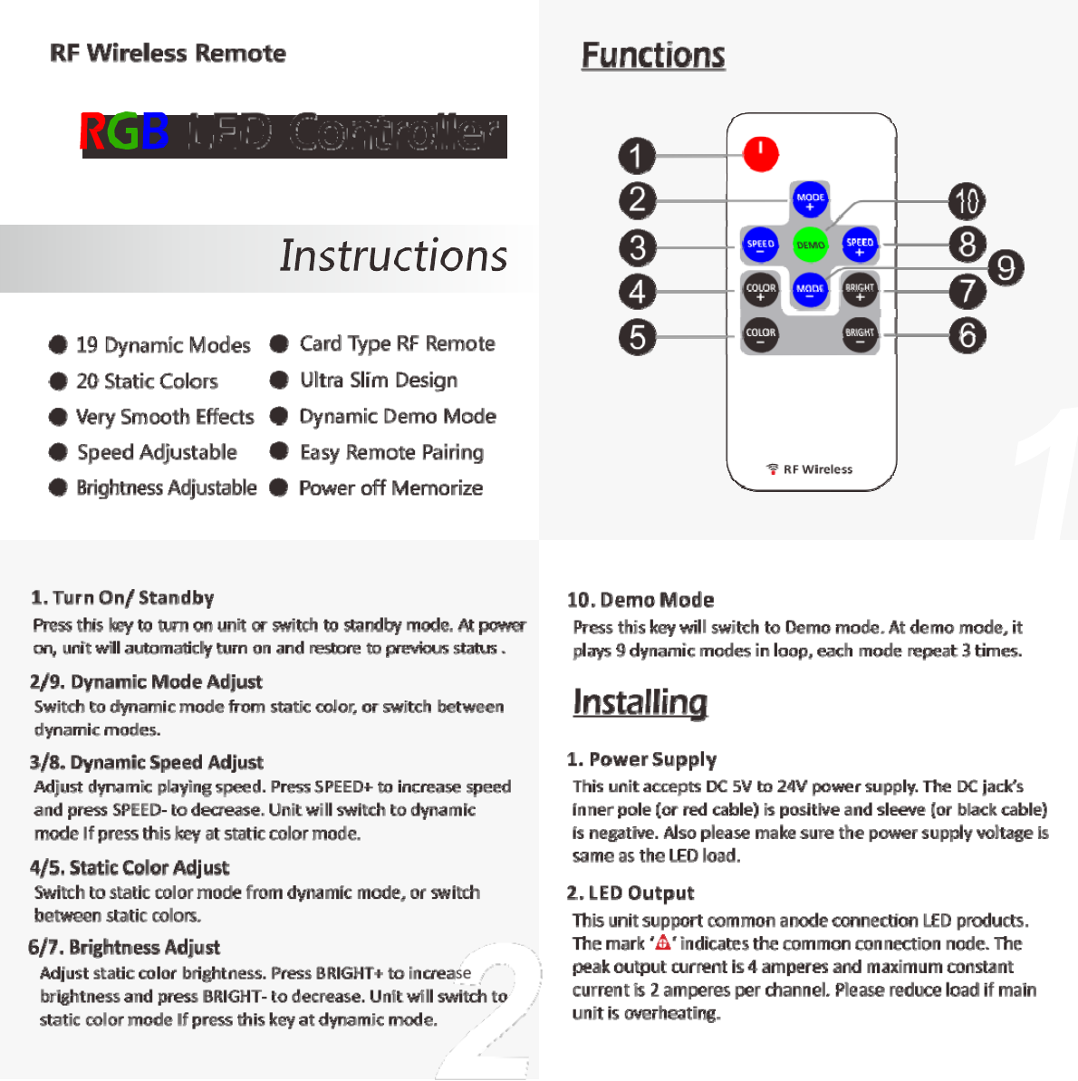Rayrun Technology RM03 RF Wireless Remote Controller for LED controller User Manual 1