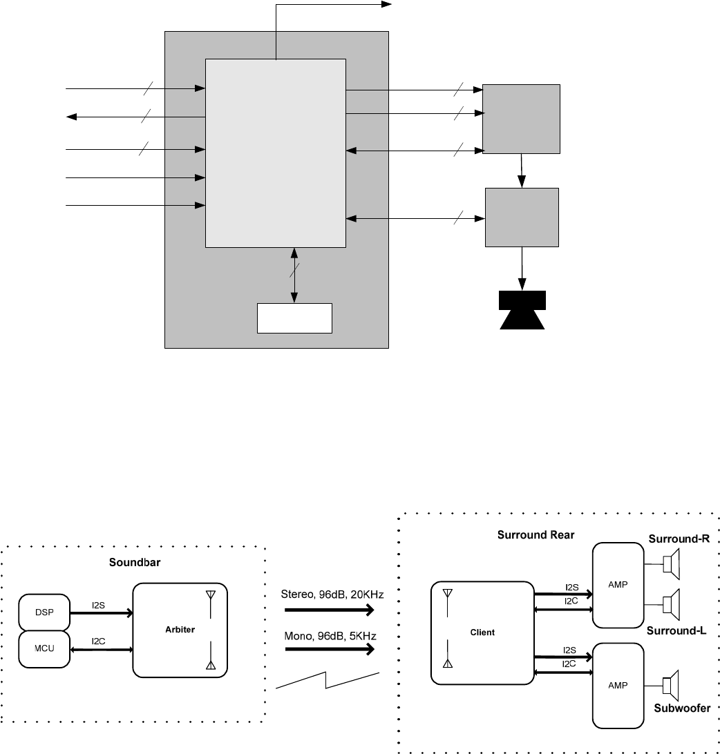 Mono/Stereo Wireless Audio System, based on the Avnera AV5100 IC