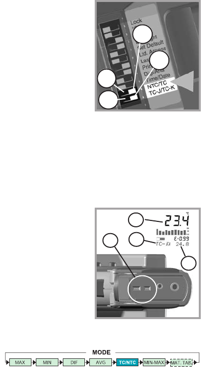 Open the thermometer‘s handle and switch the DIL