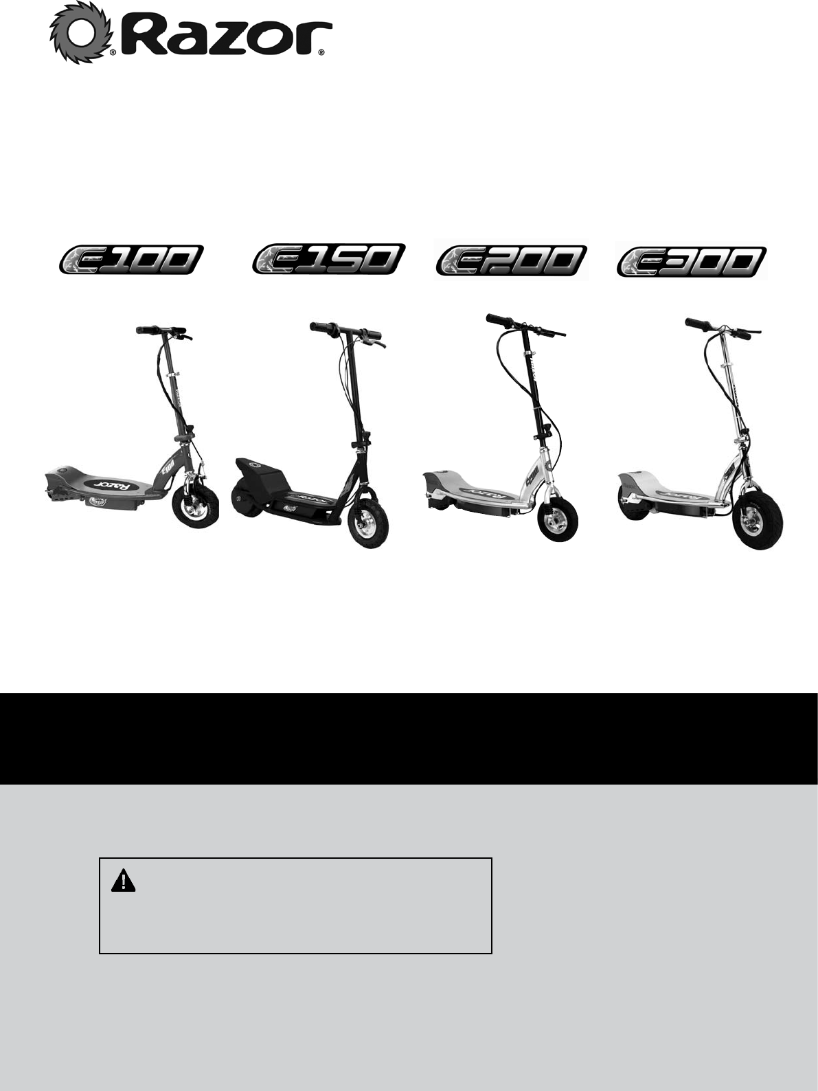 WARNING: Riding the E100, E200 or E300 scooter can be
