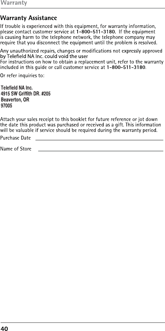 Warranty Assistance 40