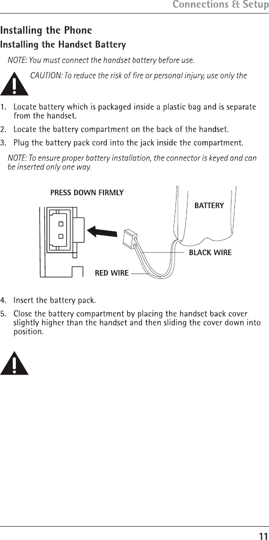 Installing the Handset Battery 11