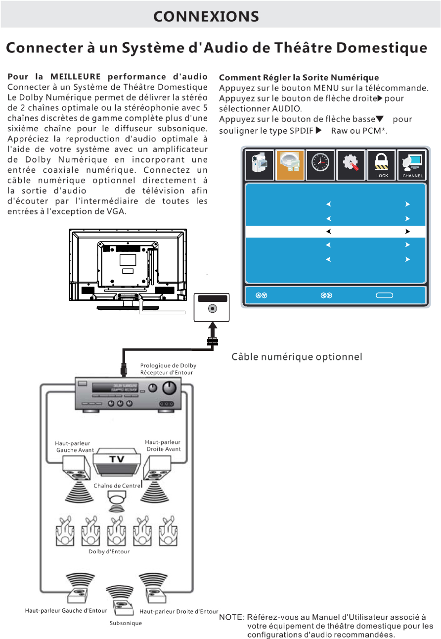 Audio: Deux chaînes linéaires PCM 32, 44.1 et 48kHz, 16, 20 et 24 bits