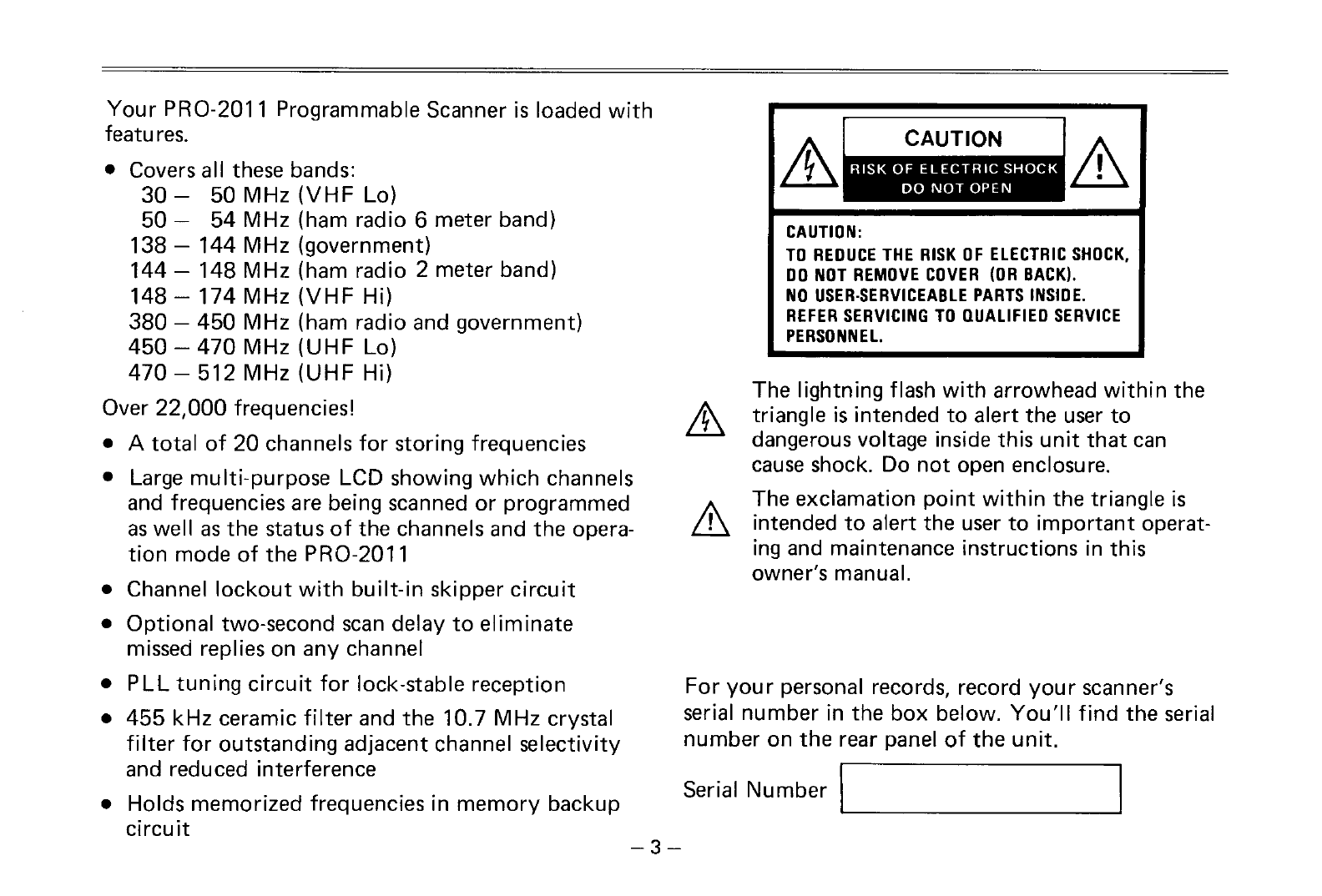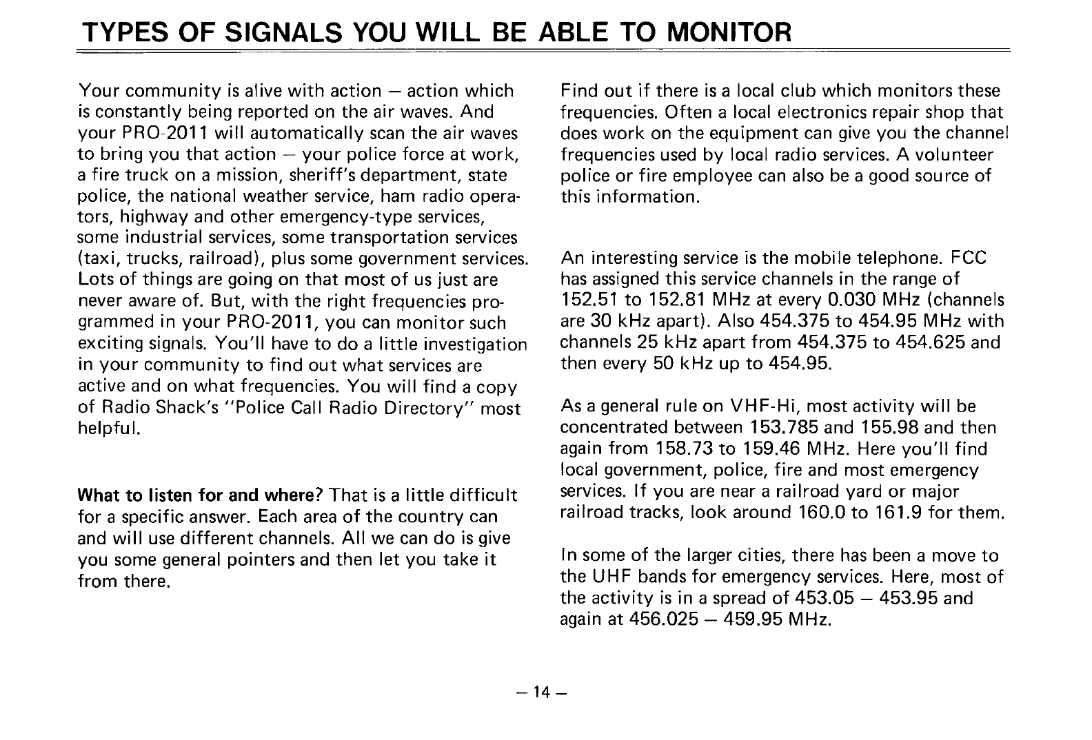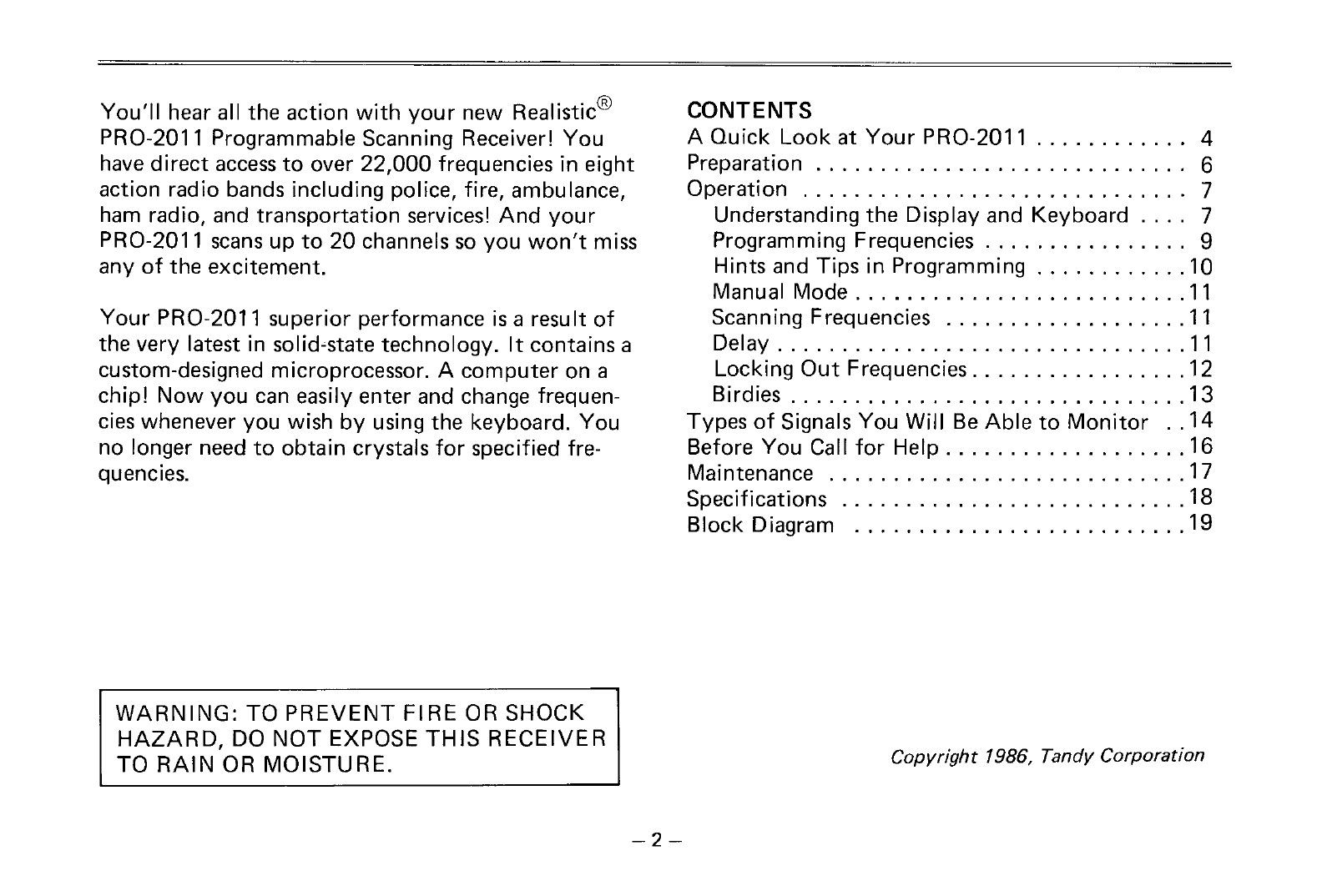 Realistic Pro 2011 Users Manual Radio Shack Programmable Scanner