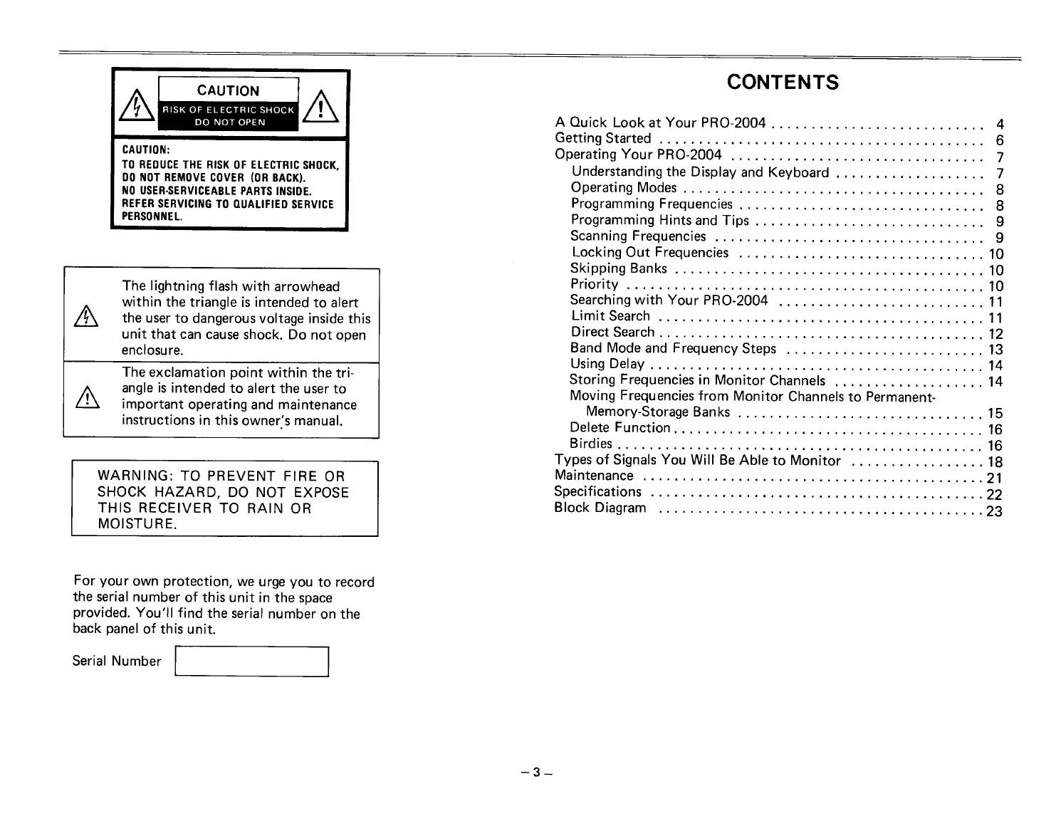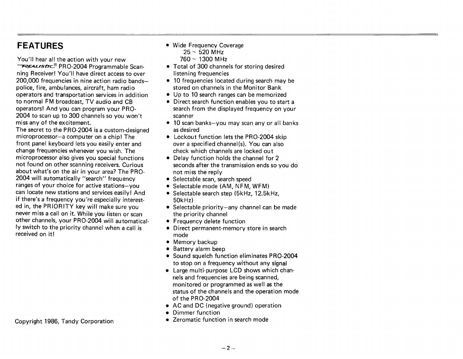 Realistic Stereo Receiver Pro 2004 Users Manual Owner's