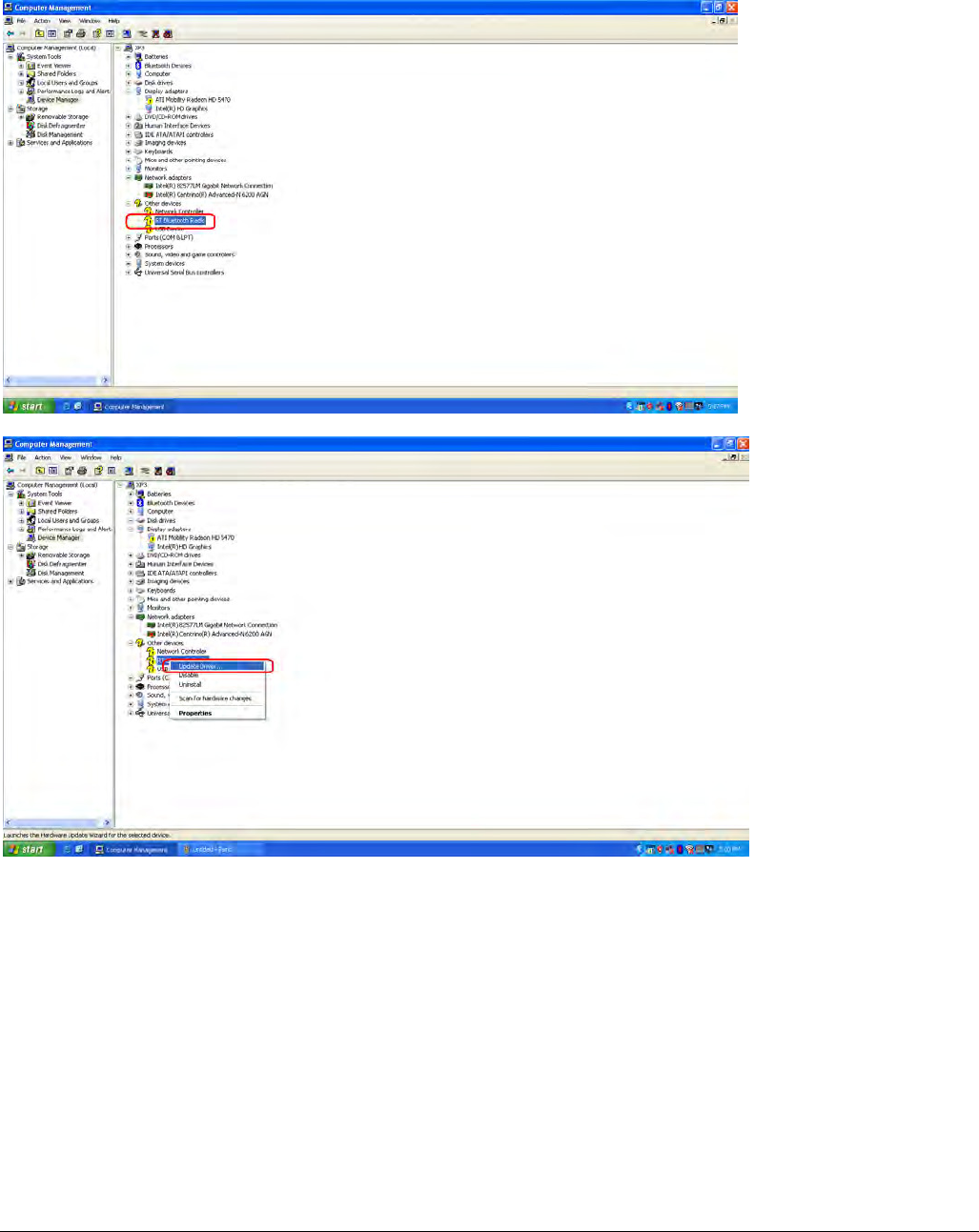 C. Click right button on “RT Bluetooth Radio” and select “Update Driver”.