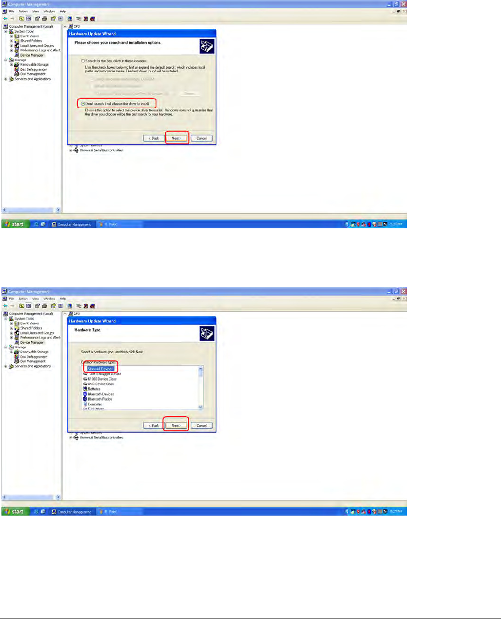 F. Finish step “E” then select “Don’t search, I will choose the driver to install” and press Next button.