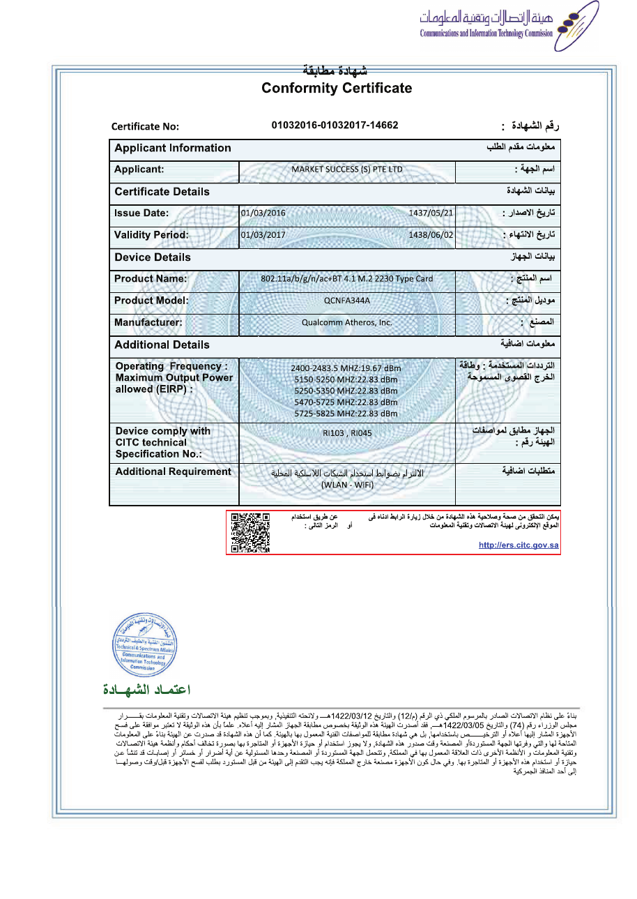 ThefollowingmodelshavebeenapprovedbyRatel:8265NGW,QCNFA344A,andQCNFA435.