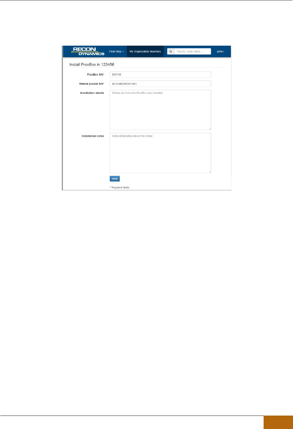 • Document any information regarding the vehicle or equipment the ProxBox is being