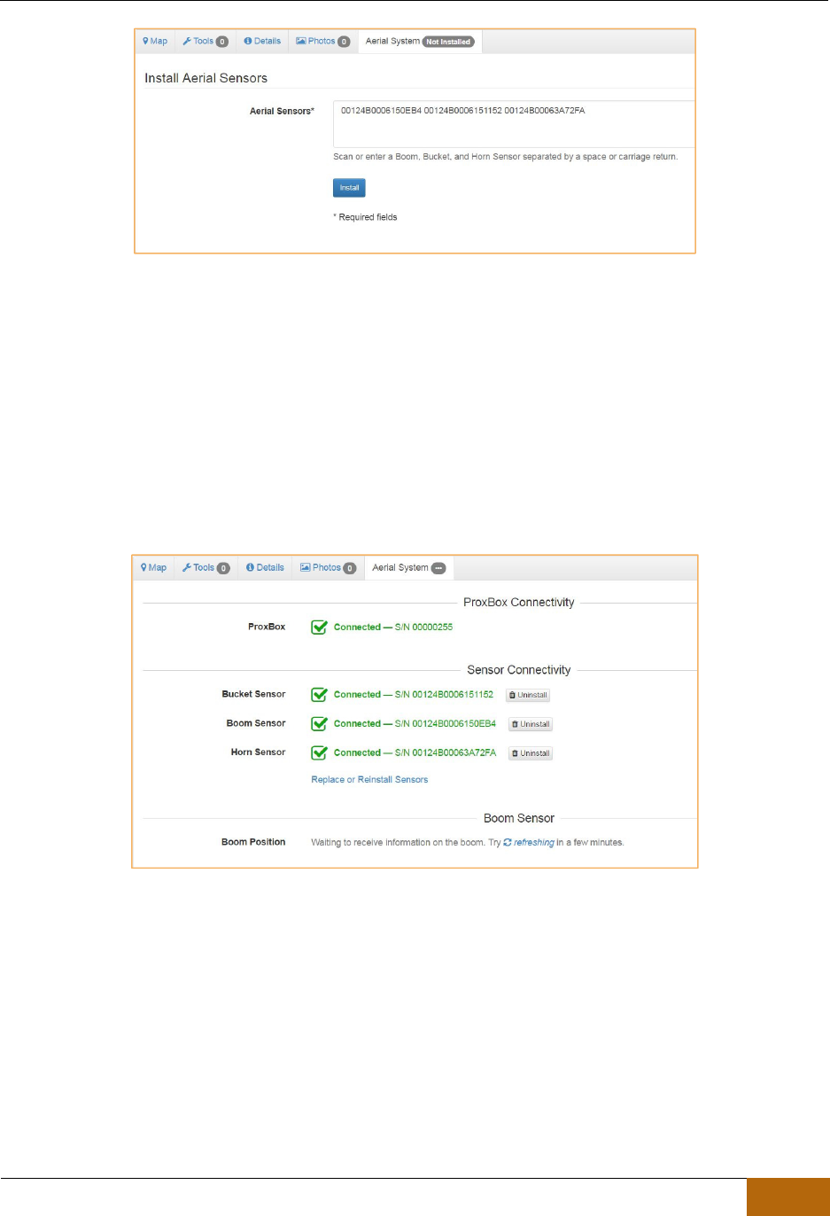 sensor, bucket sensor and ProxBox. This information is required to properly setup