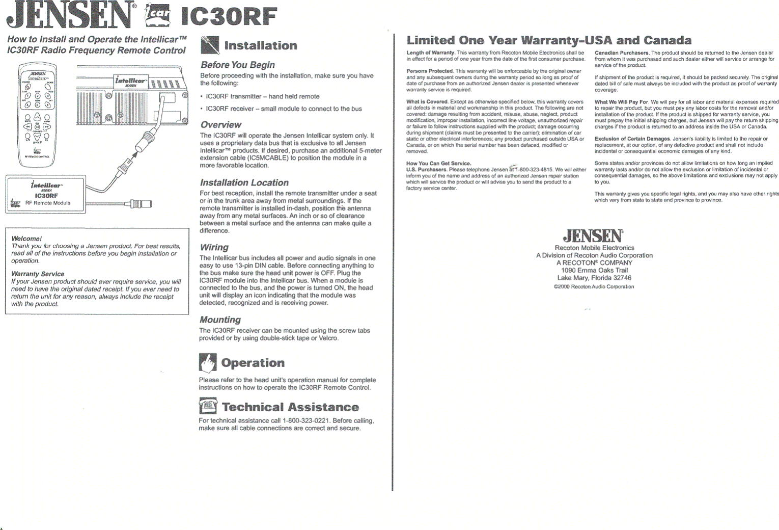 Recoton IC30RF-T Security Device Transmitter User Manual users manual
