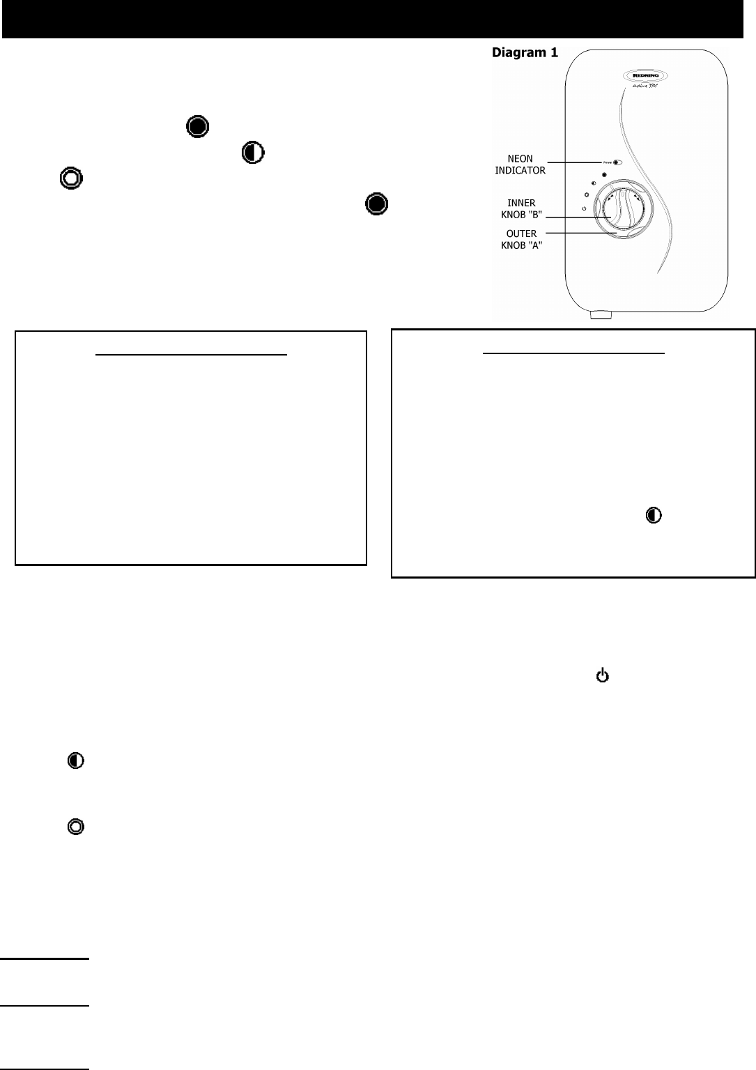 • The neon indicates when the heaters are on and, if the shower has been recently