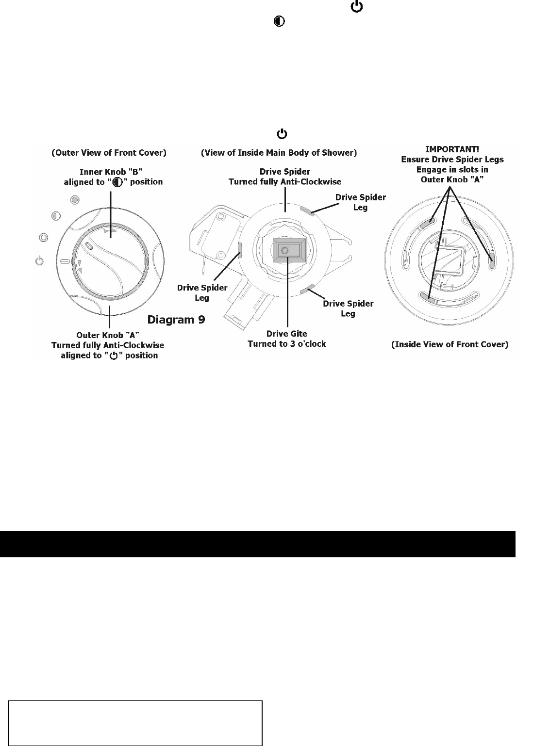 e. Fit the front cover of the shower to the main body ensuring that the 3 x “Drive Spider Legs”