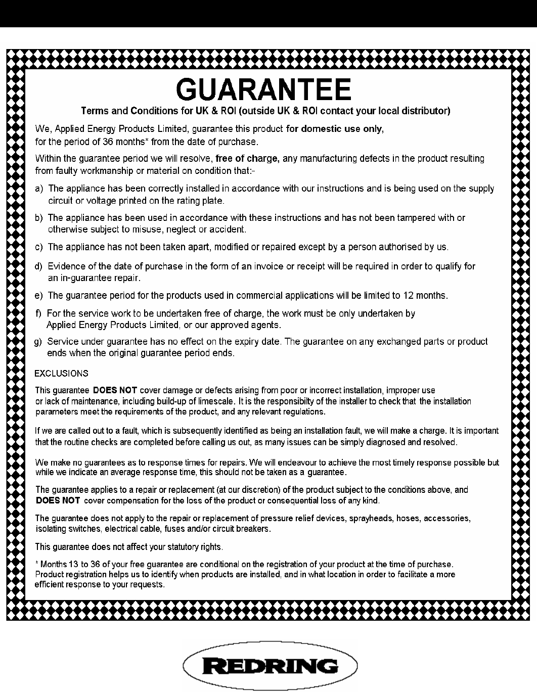 Thank you for purchasing a quality Redring Active 350S Electric Shower manufactured in England.