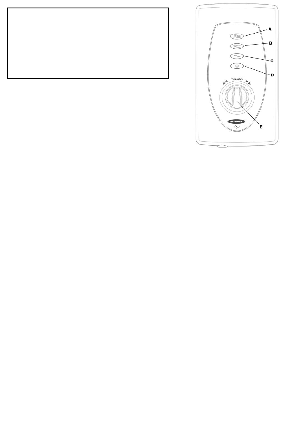 4. If the temperature is too high then turn knob “E” clockwise allowing 20 seconds between