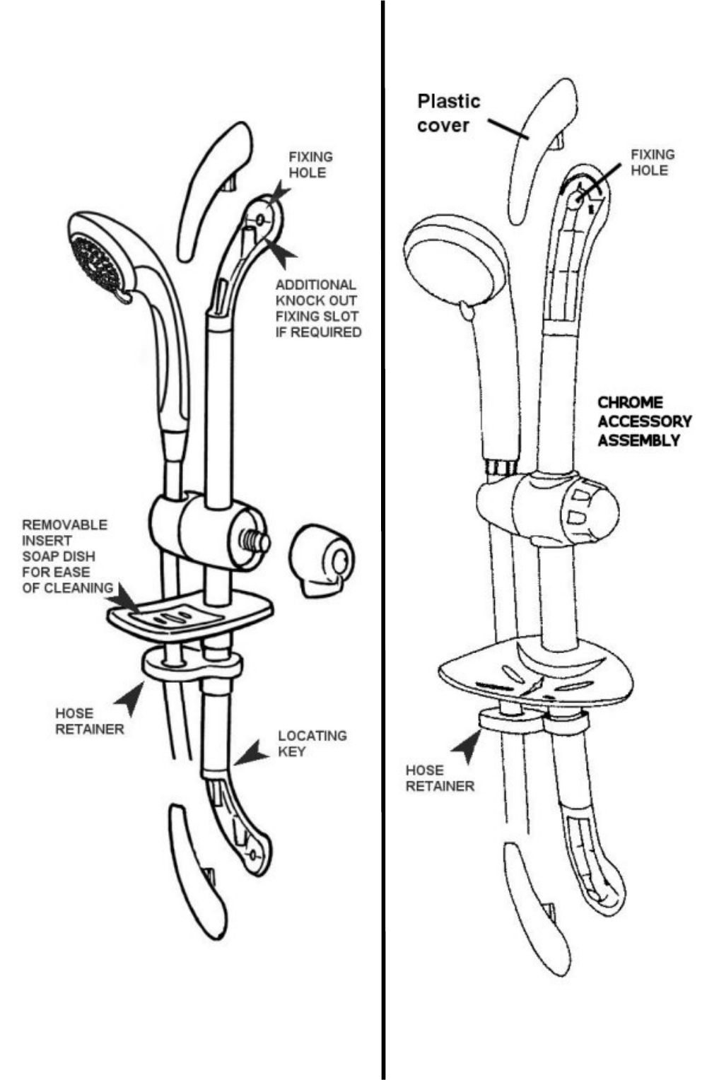 WARNING - DO NOT FIT A TAP ON THE SHOWER OUTLET. TAKE CARE TO AVOID