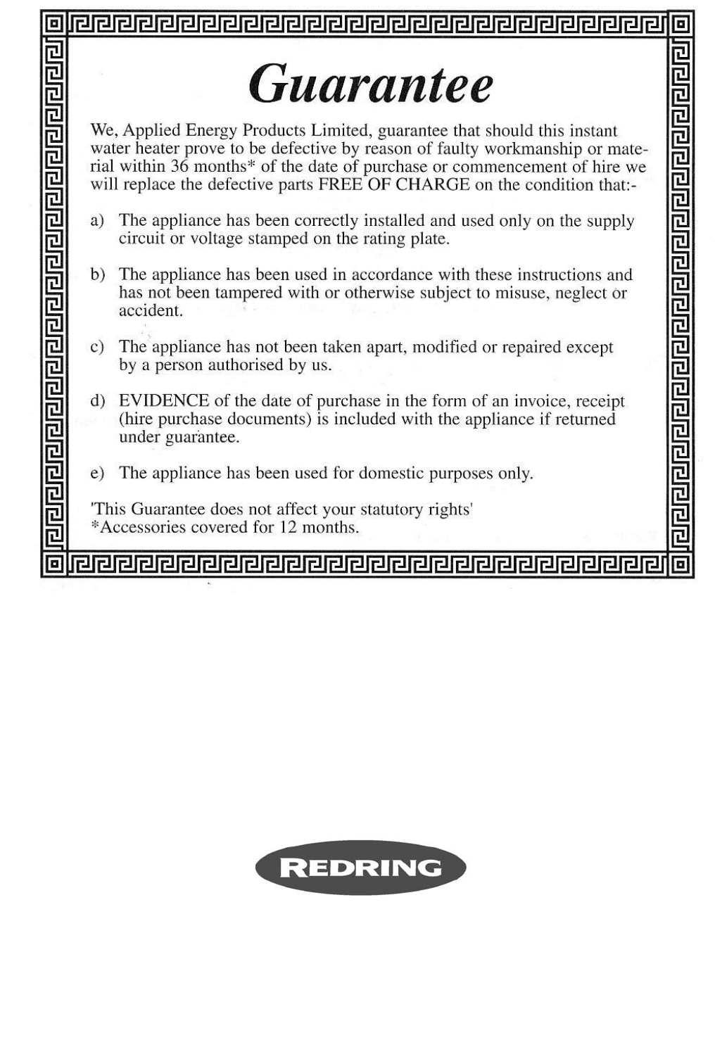 7. The shower is designed to have an open outlet and should only be used with ‘Redring’