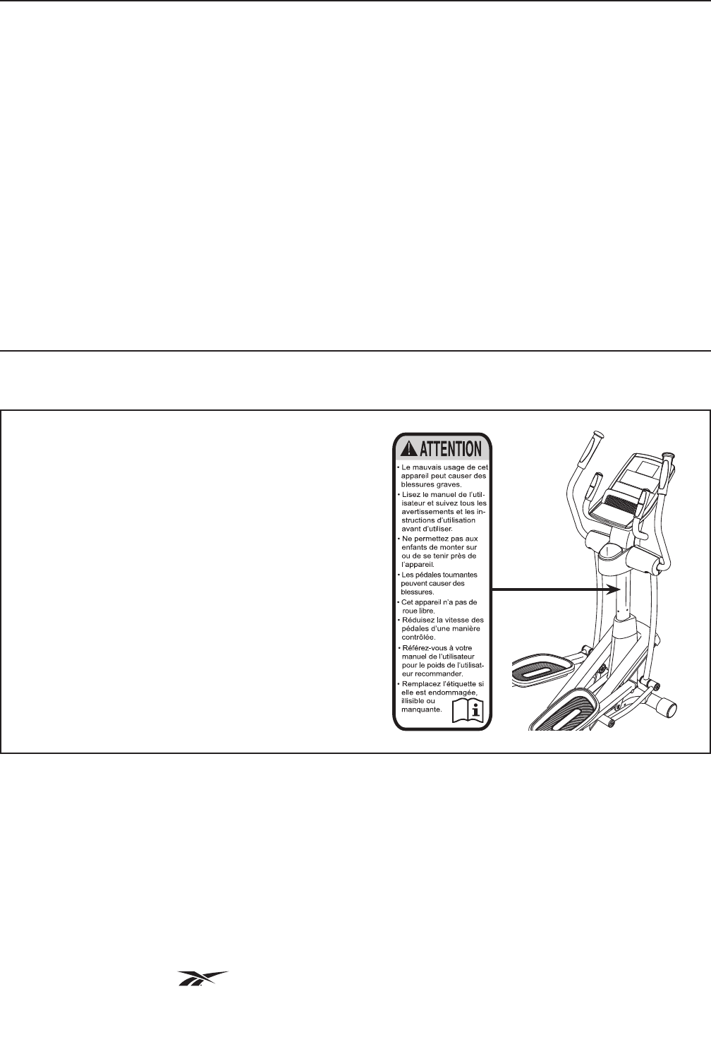 se trouvant sur l’appareil, avant d’utiliser votre elliptique. ICON ne peut être tenu responsable de
