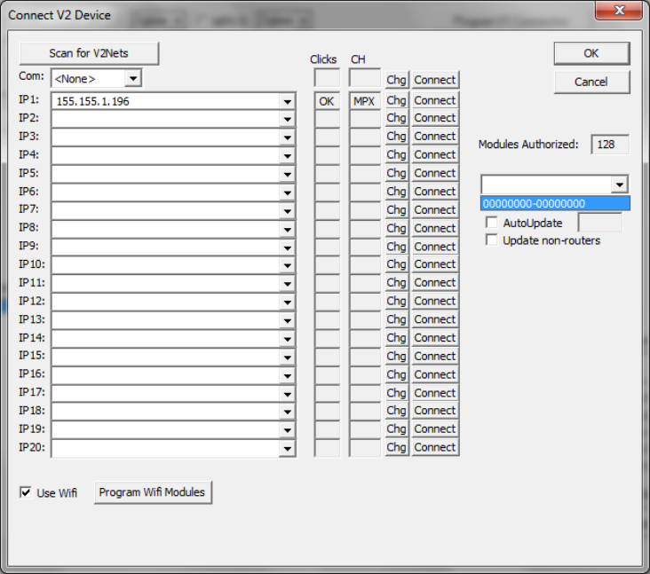 from the drop-down list. In the figures below the BASE receiver is connected on IP: 155.155.1.196
