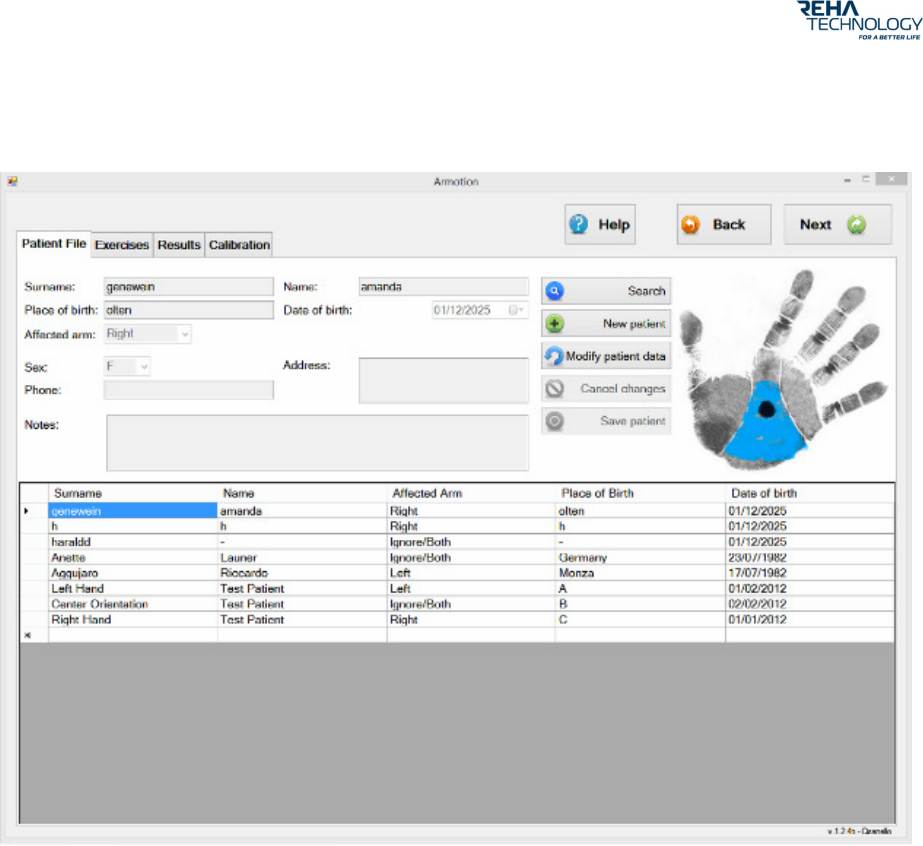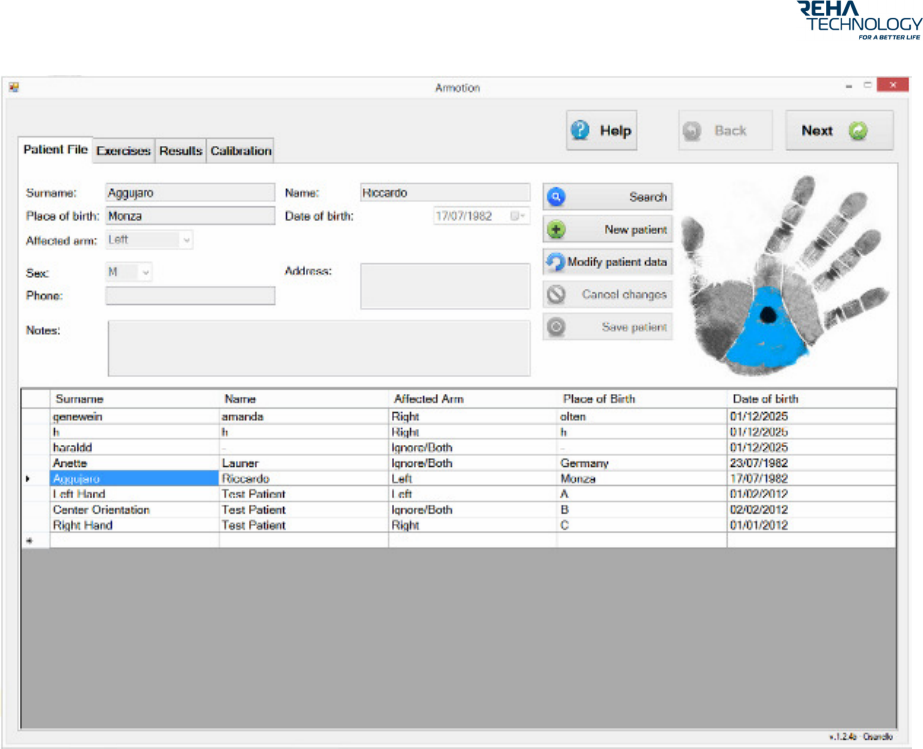 • Forces : Shows the forces of interaction between patient and the armotion as recorded