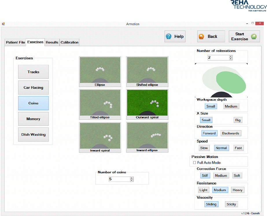 • Trajectory : shows the trajectory of the armotion while performing the exercise