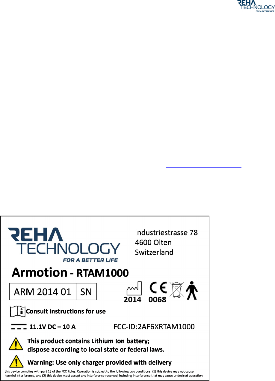 The Armotion may not be disposed but has to be returned to Reha Technology AG.