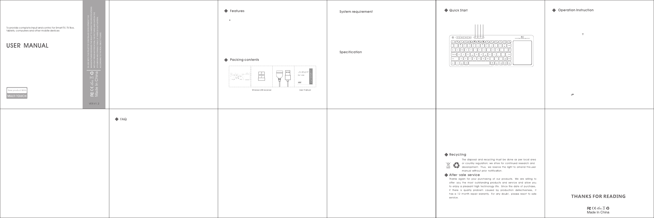 Reiie intelligent technology K18 Multifunction Wireless keyboard User Manual 06518207002