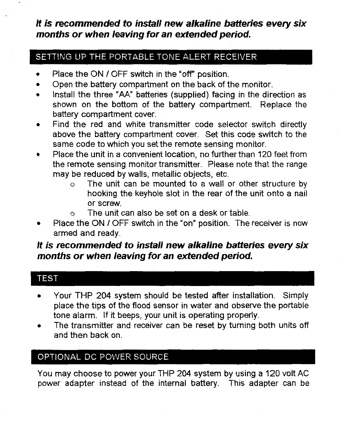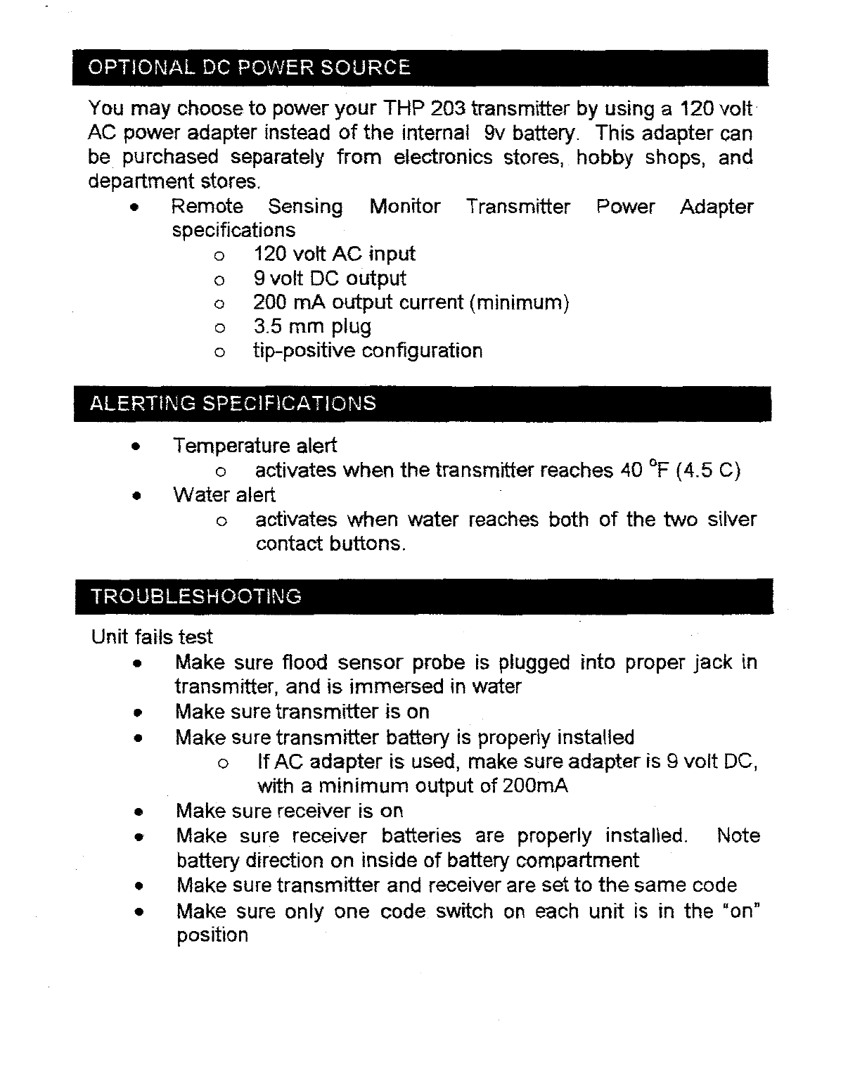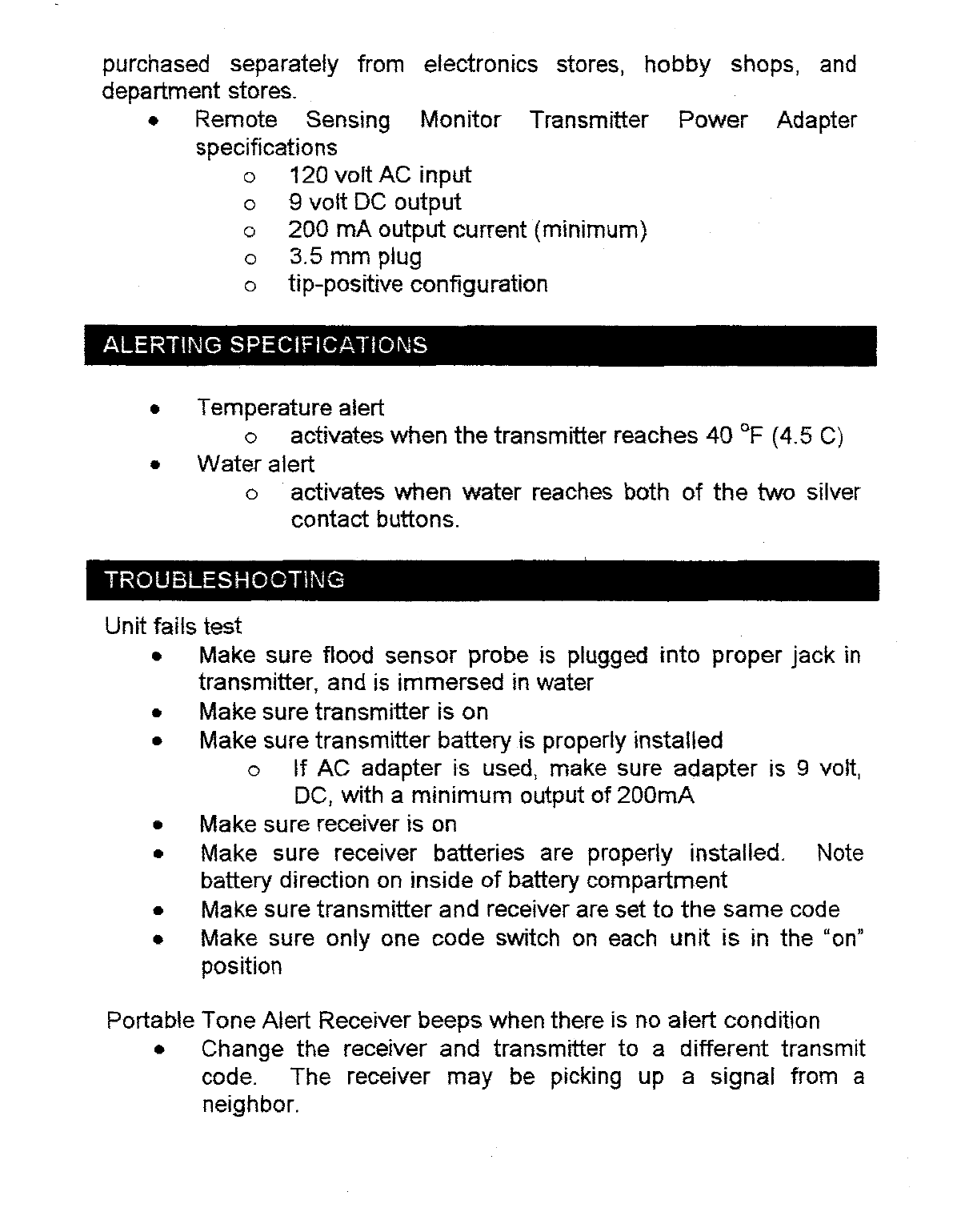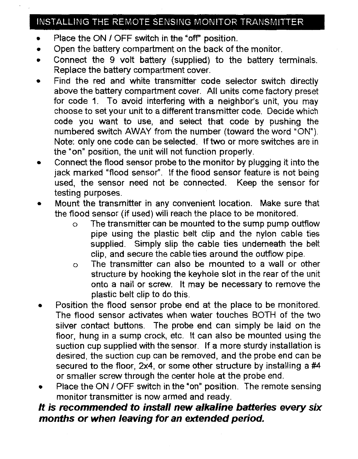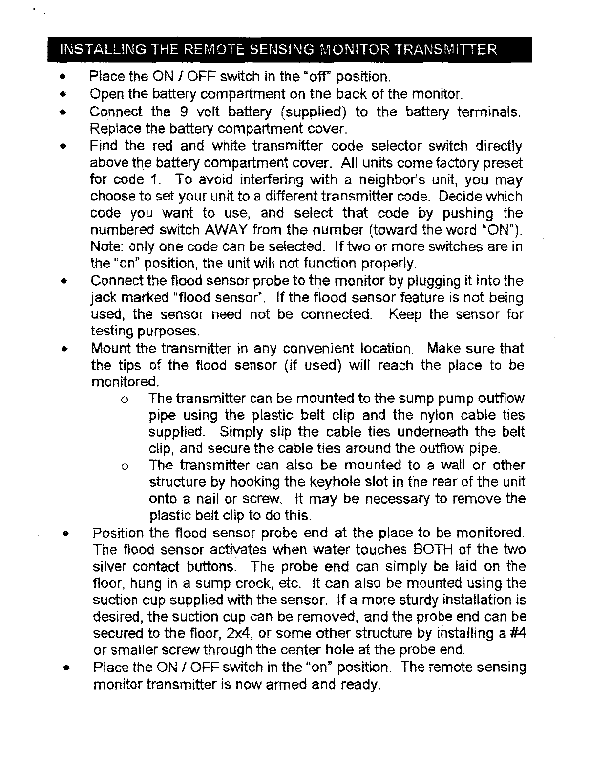 Reliance Controls 11031 Wireless Remote Flood or Freeze Warning Alarm User Manual