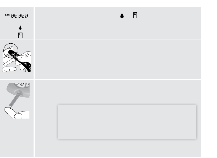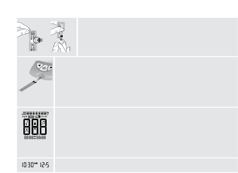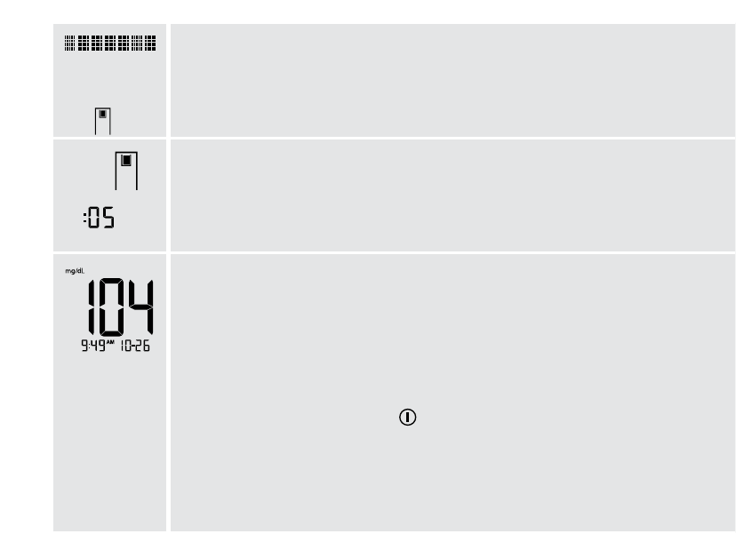 When you insert a test strip into your meter, the Apply Sample message shows on your meter’s