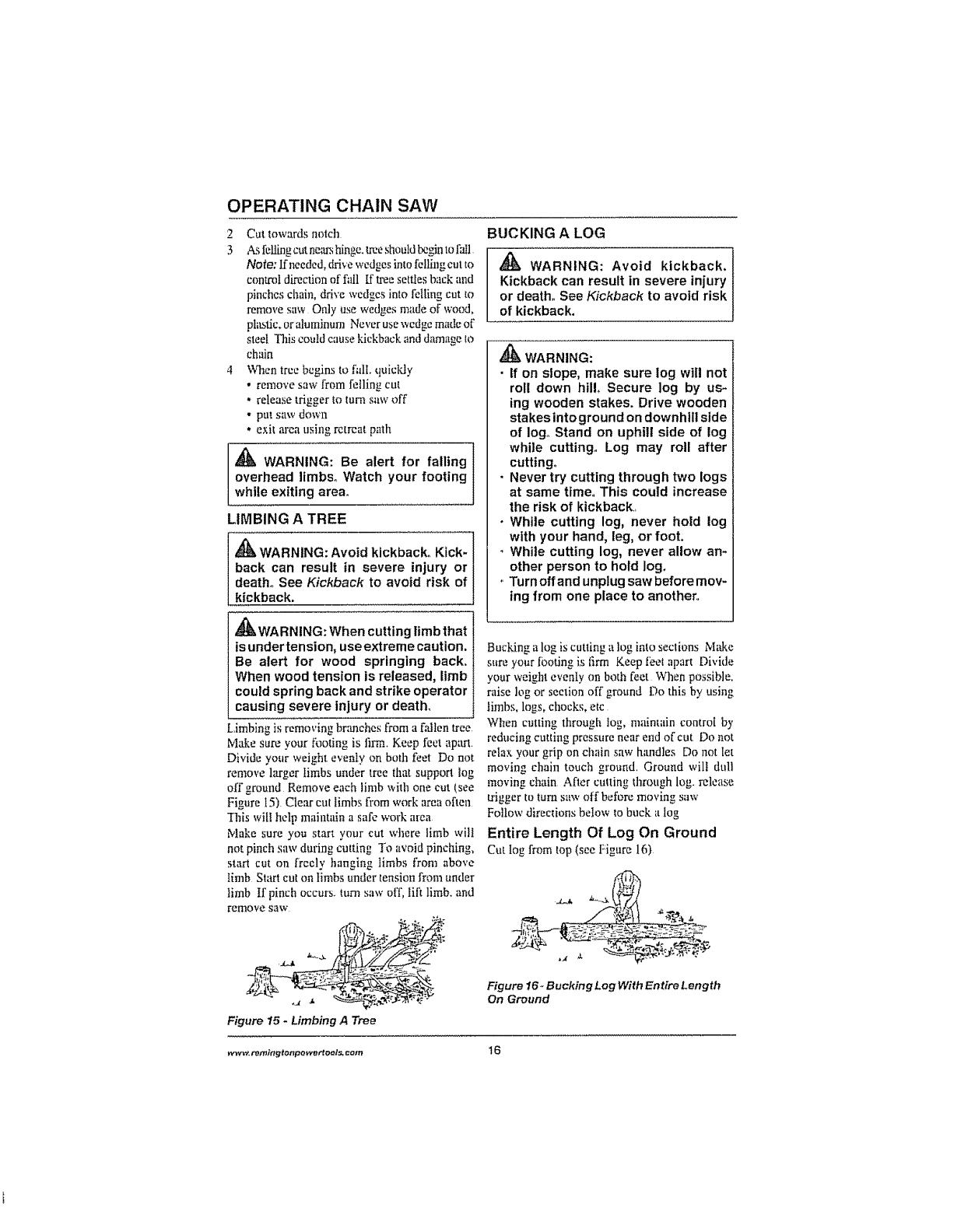 OPERATING CHAIN SAW ................................ 13