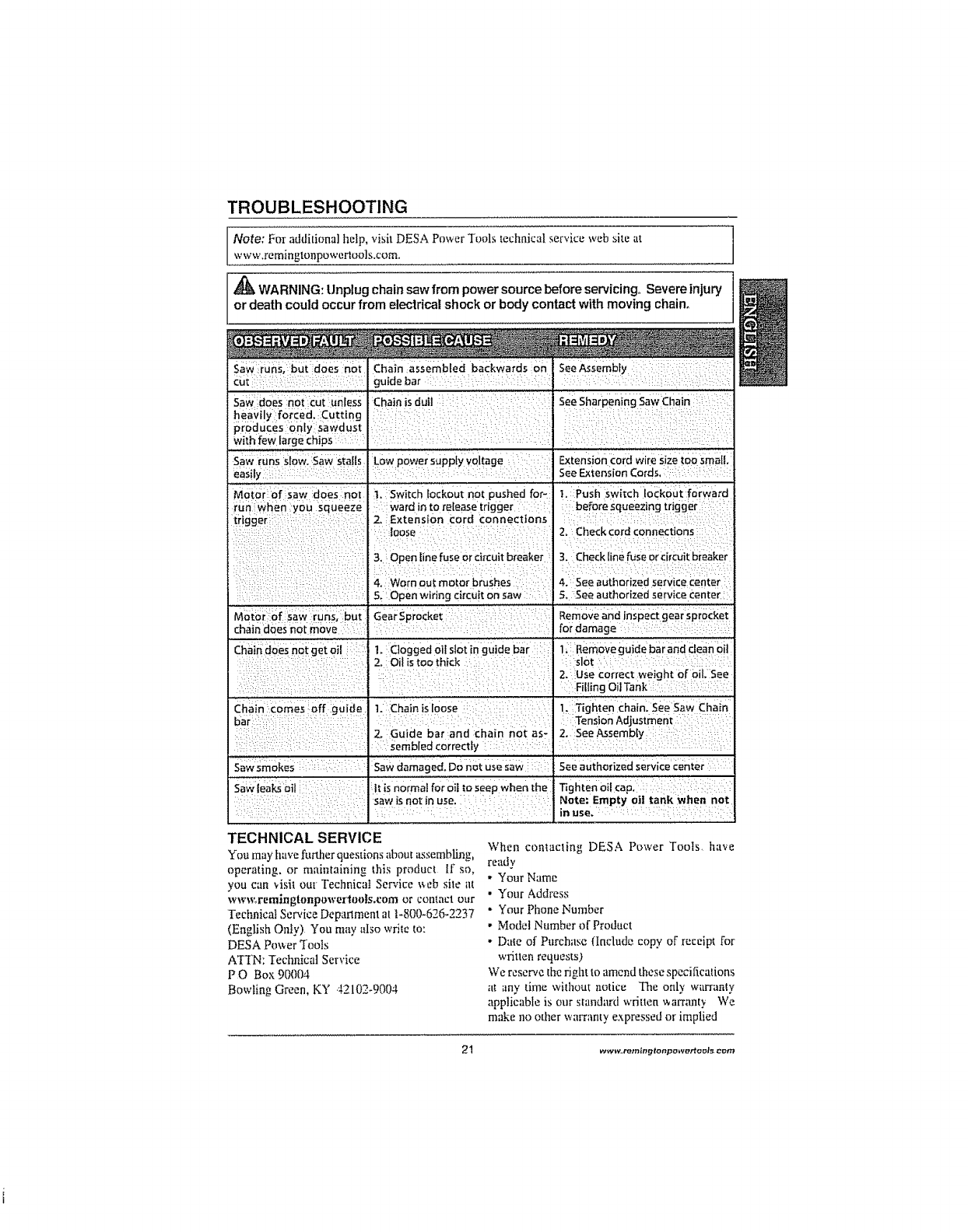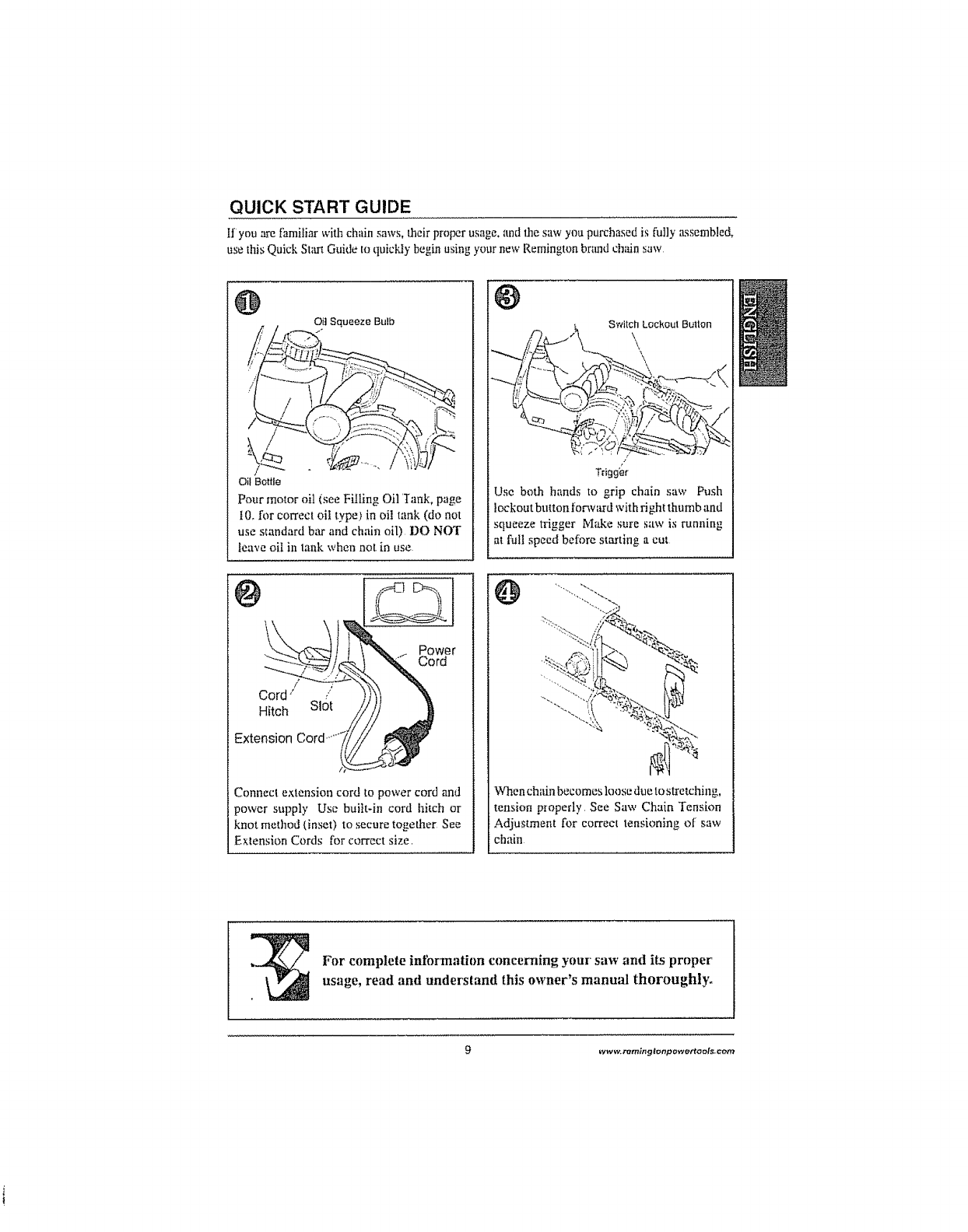 REMINGTON Chainsaw, Electric Manual L0907451 REMINGTON Chainsaw, Electric Owner's Manual, REMINGTON Chainsaw, Electric installation guides