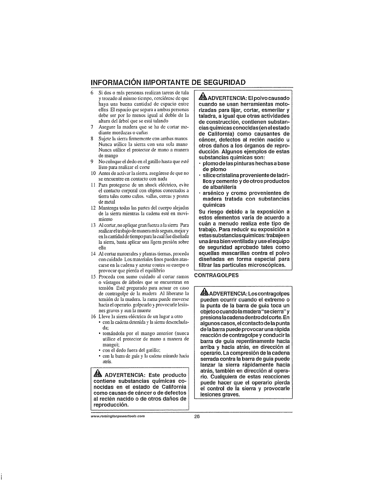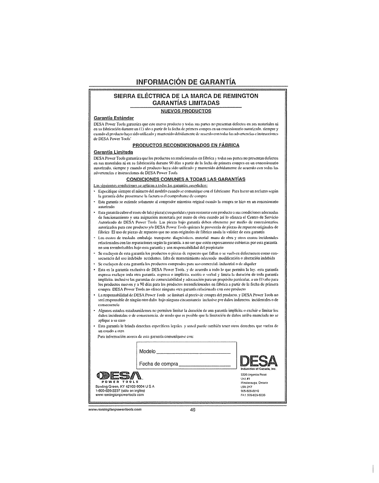 Para mrs informacibn, wwworemingtonpowertools.com
