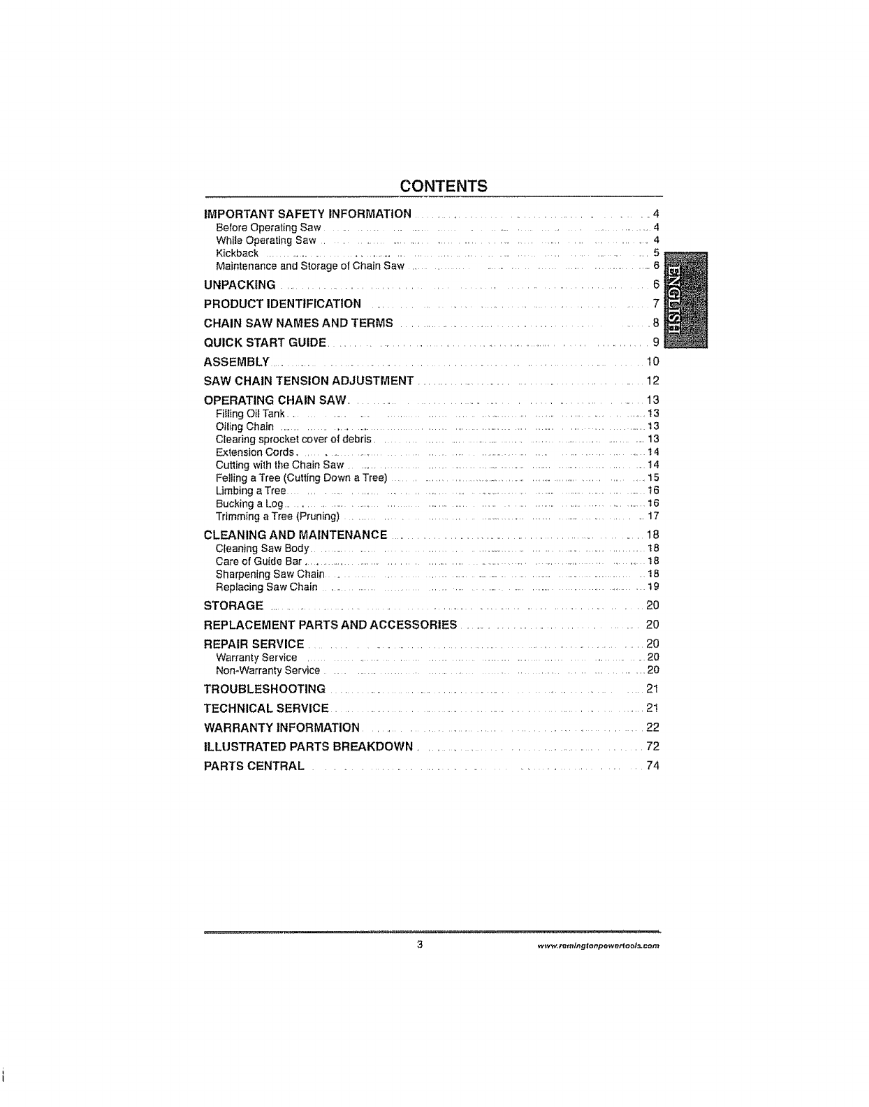 Remington M15012US User Manual ELECTRIC CHAIN SAW Manuals And Guides L0907451