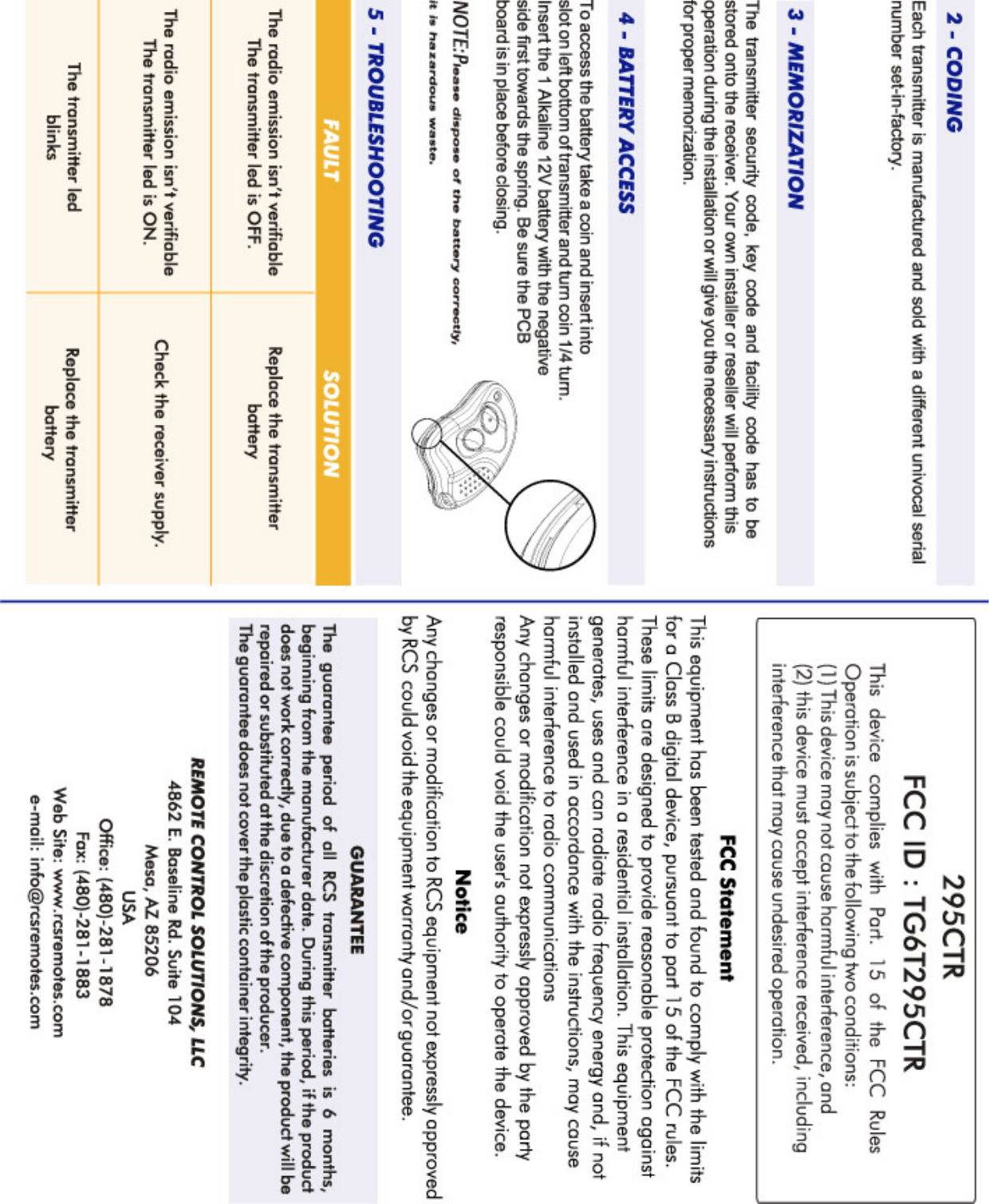 Remote Control Solutions T295CTR TRANSMITTER User Manual A5FEADB6B6C7AF75A643A64C