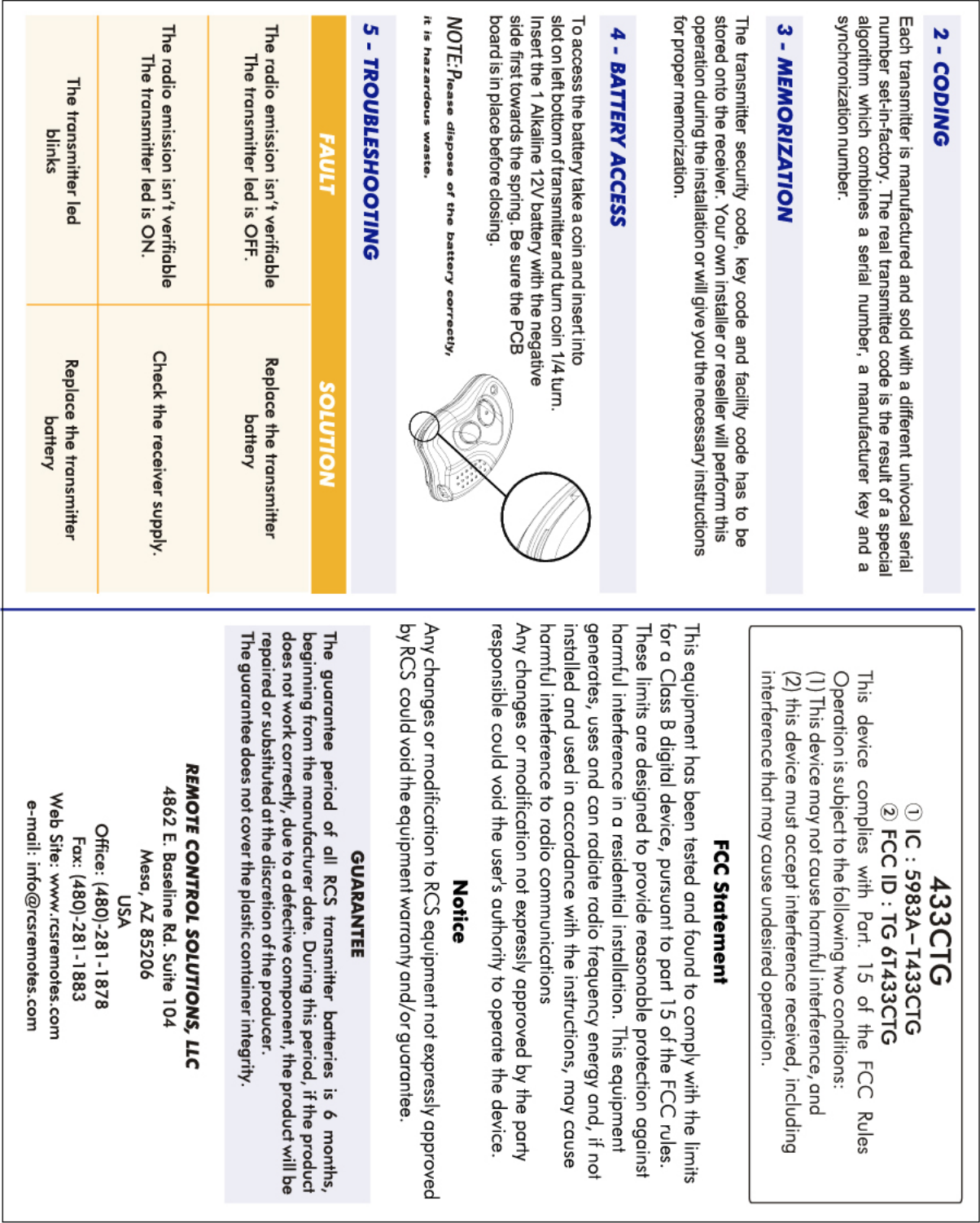 Remote Control Solutions T433CTG TRANSMITTER User Manual A5FEADB6B6C7AF75A643A64C