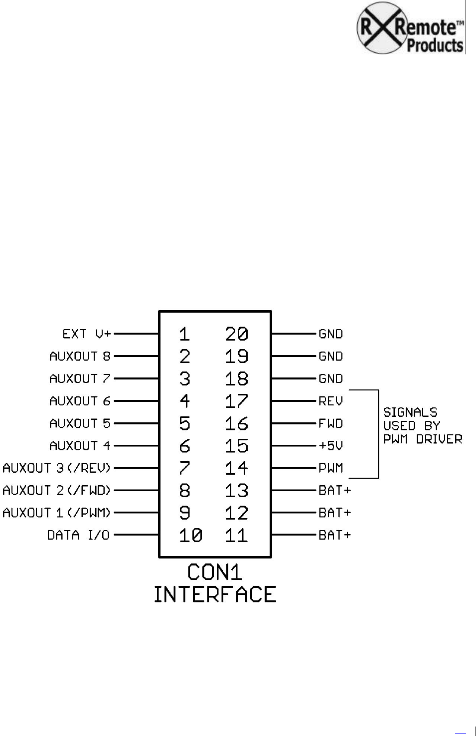the 20-pin interface connector socket (CON1) on the Receiver board or the CON1 connector of