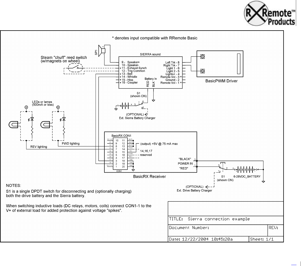 Sample connection diagram using the Soundtraxx Sierra™ sound system