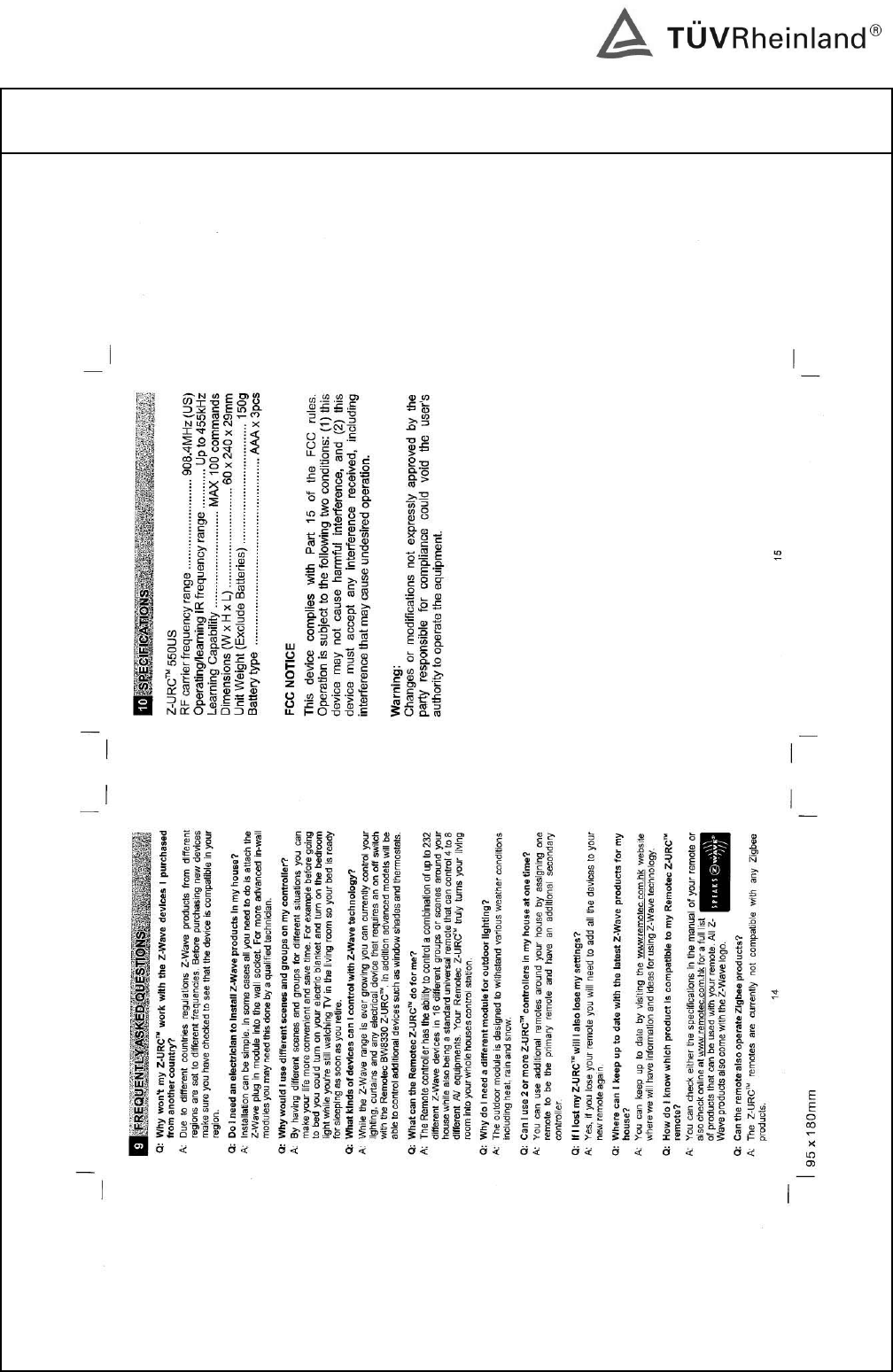 Remotec Technology BW8330 Z-Wave Enabled Universal Remote Control User Manual 14022739 001 Appendix 5