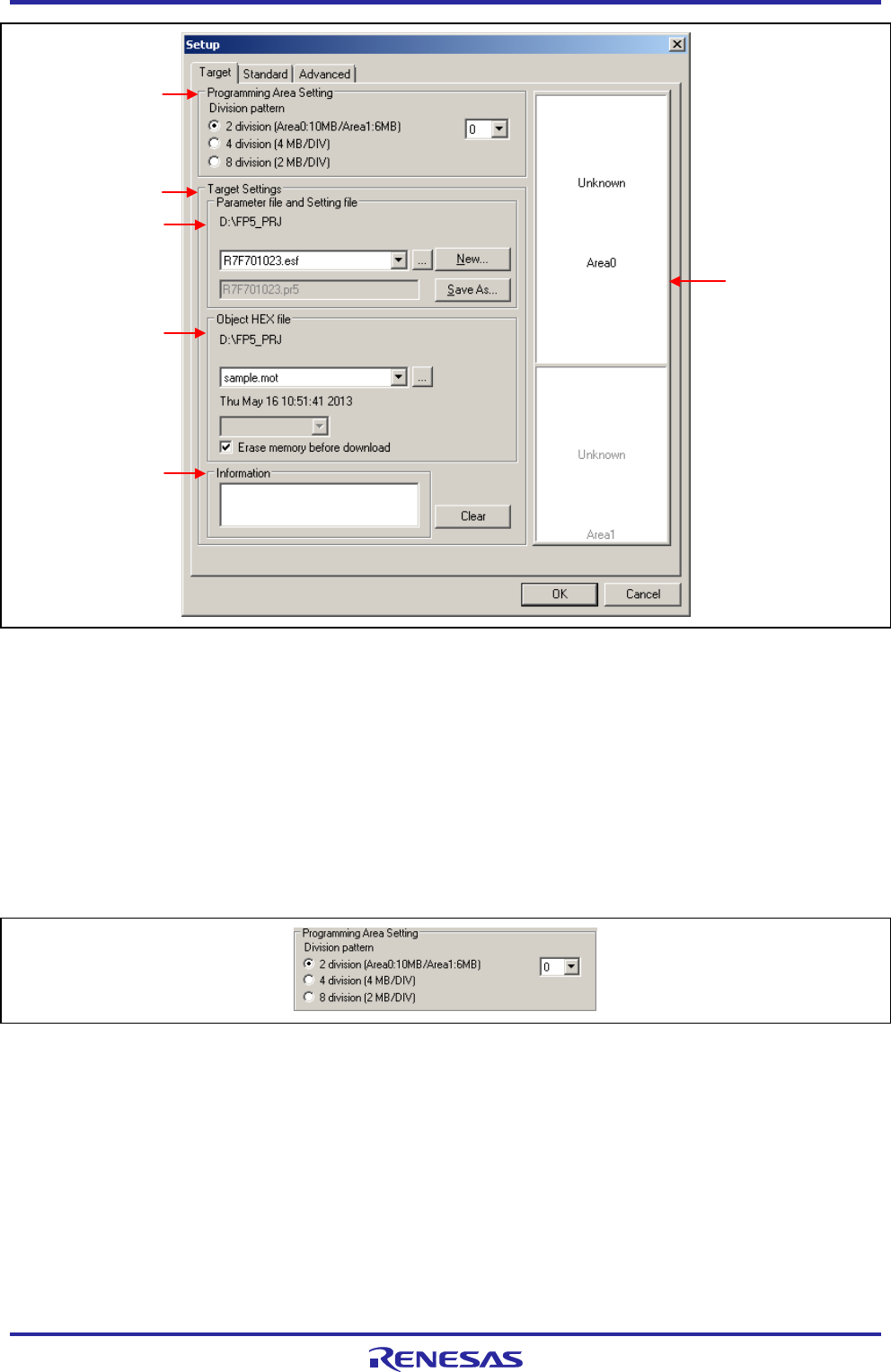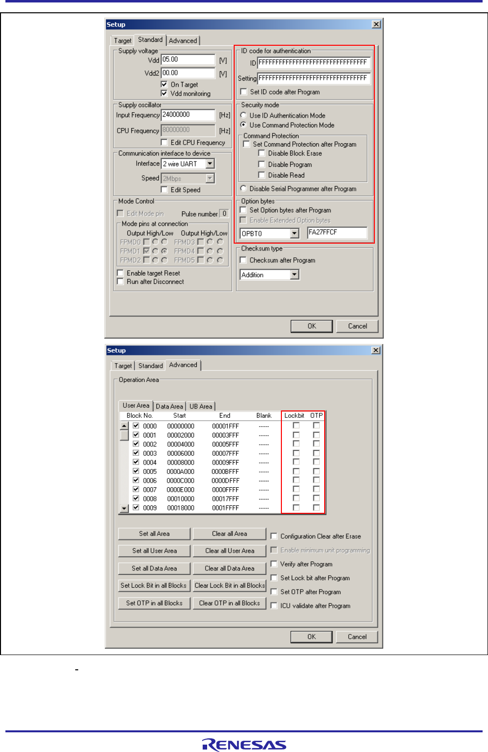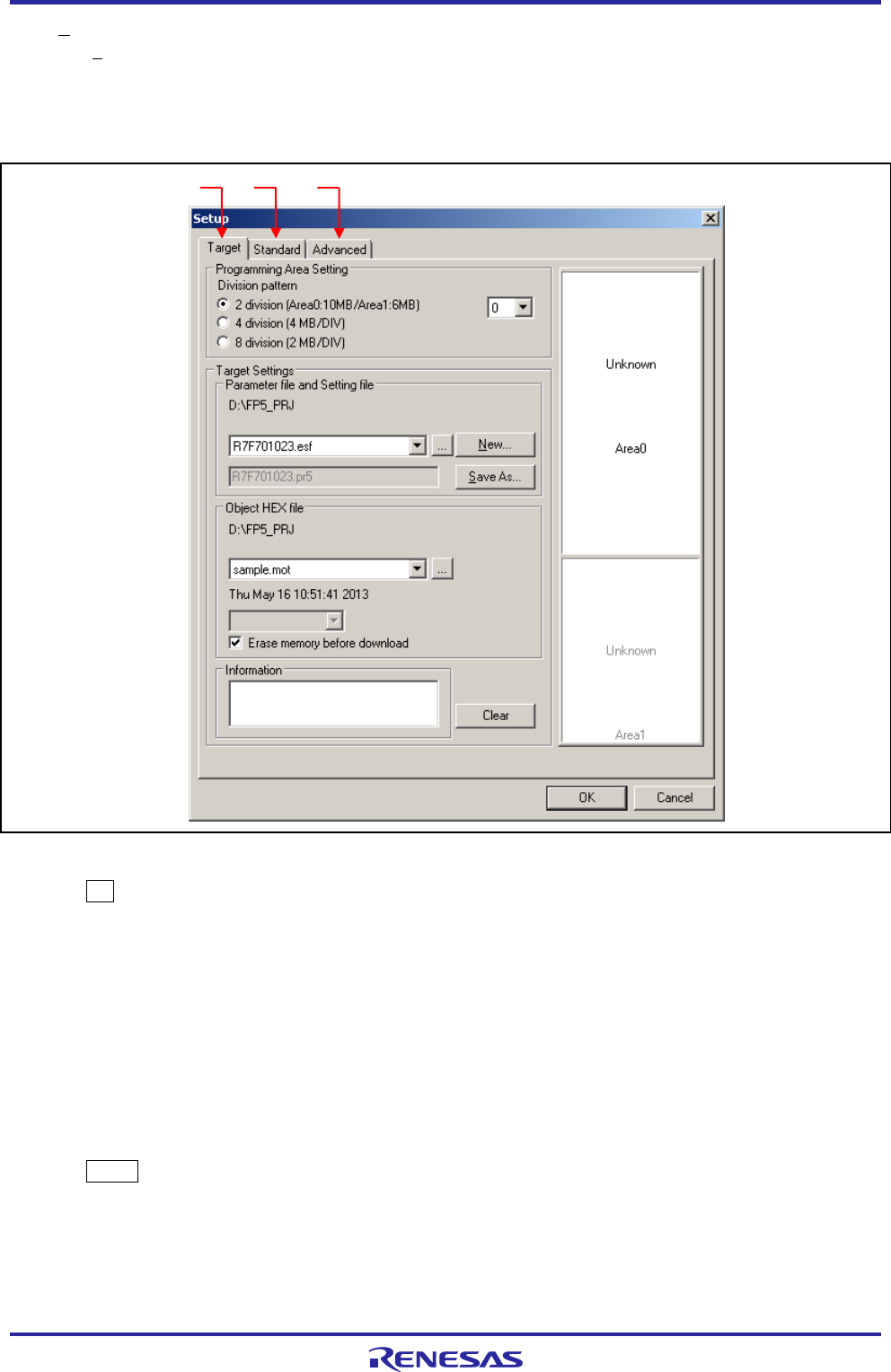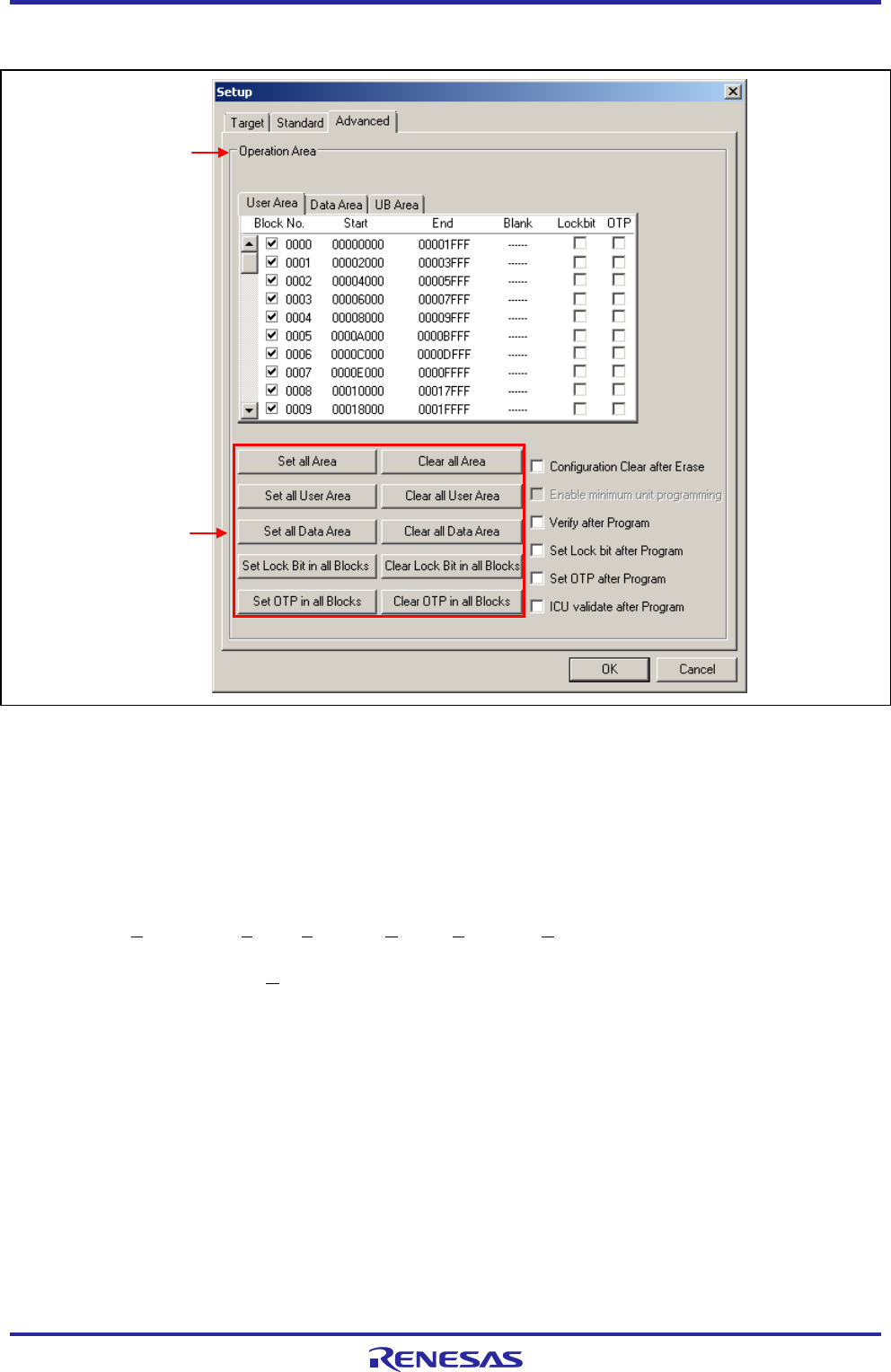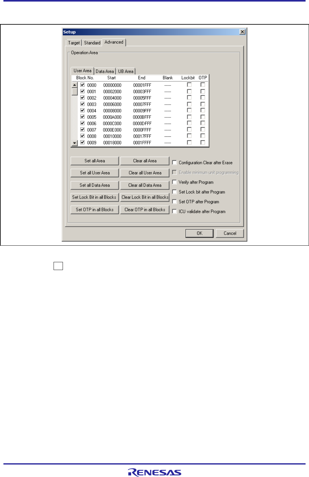 <11> Switch to the [Advanced] tab in the Device Setup dialog box. Specify the target flash memory area in the