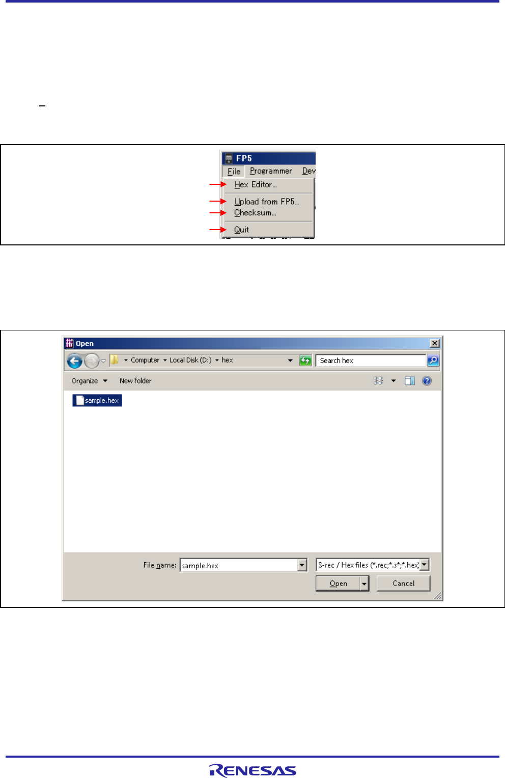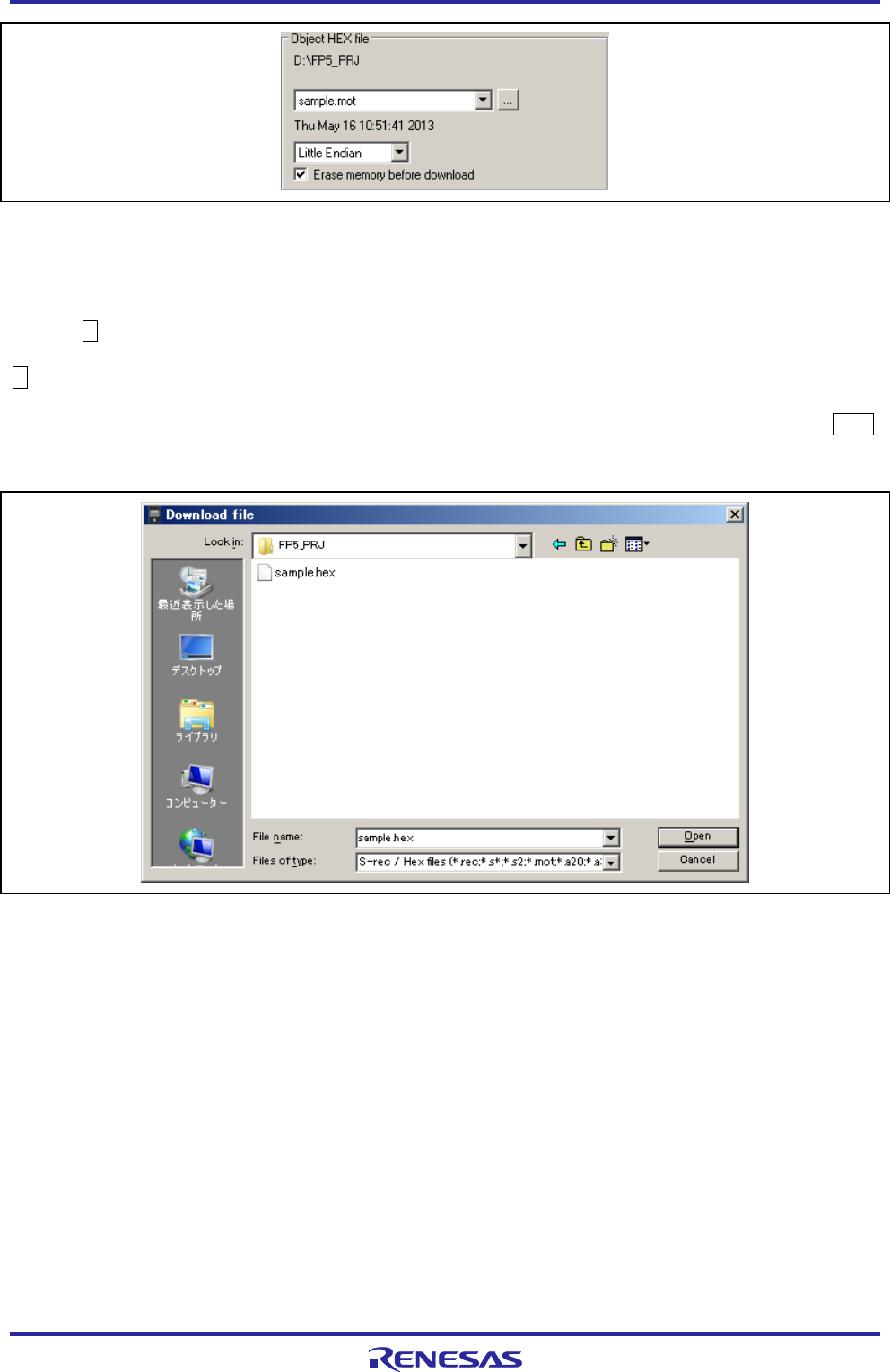 <8> Select the program file and click the Open button. In this example, “sample.hex” is selected.