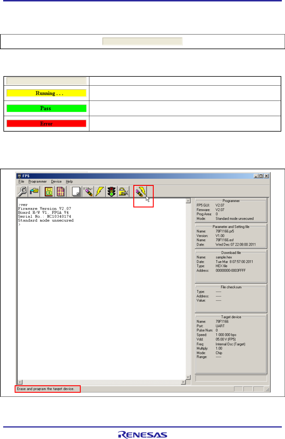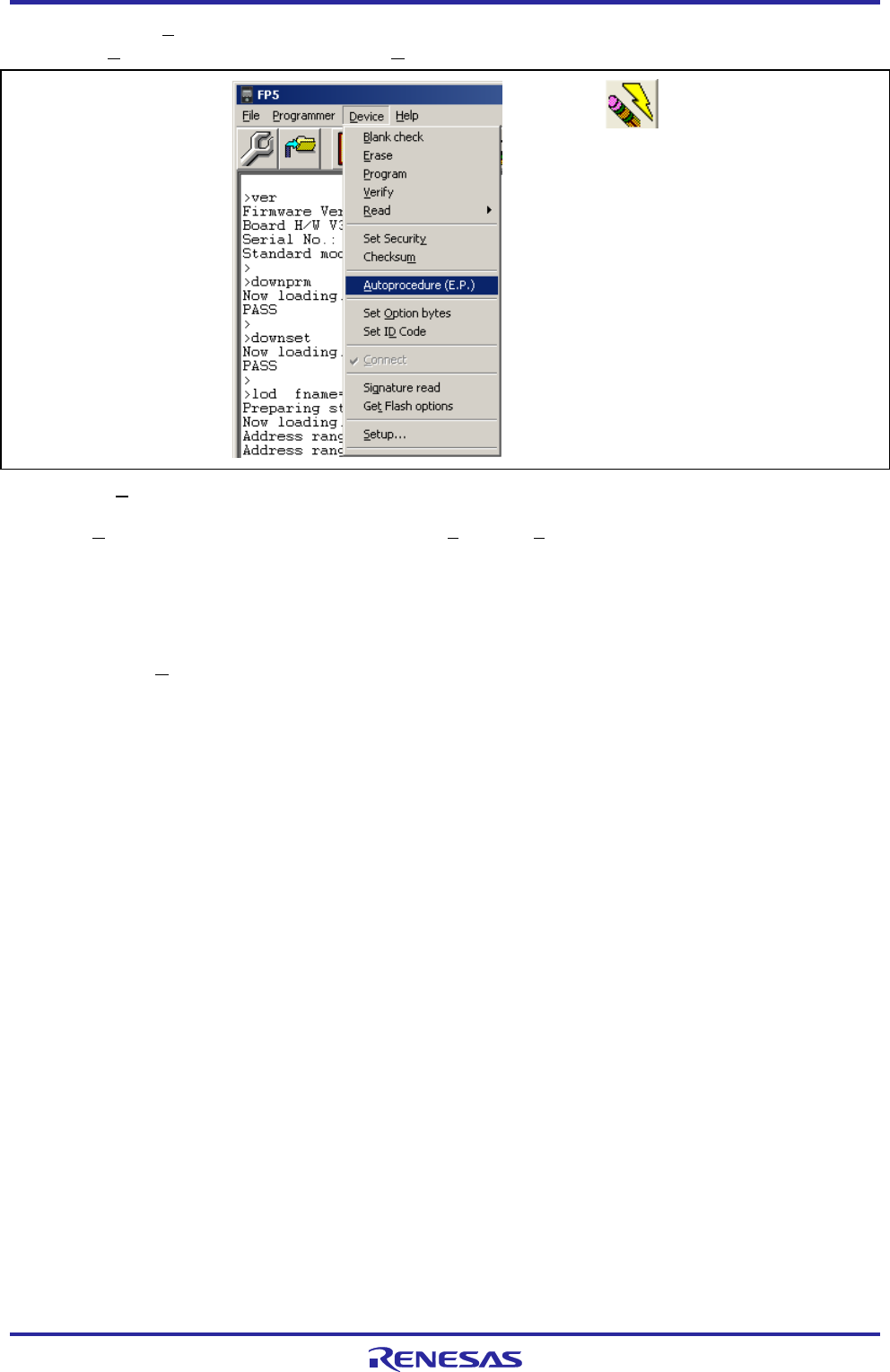 If execution of the [Autoprocedure(E.P.)] command is normally completed, “Erase, Program operation finished” is