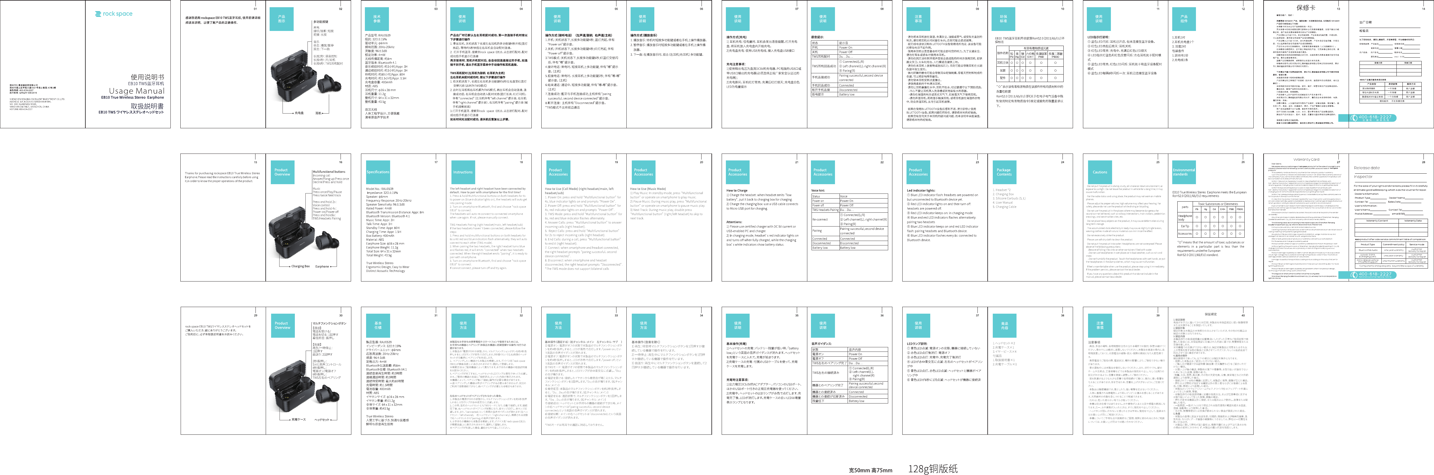 Renqing Excellent Investment RAU0539 EB10/30 True wireless stereo earphone User Manual