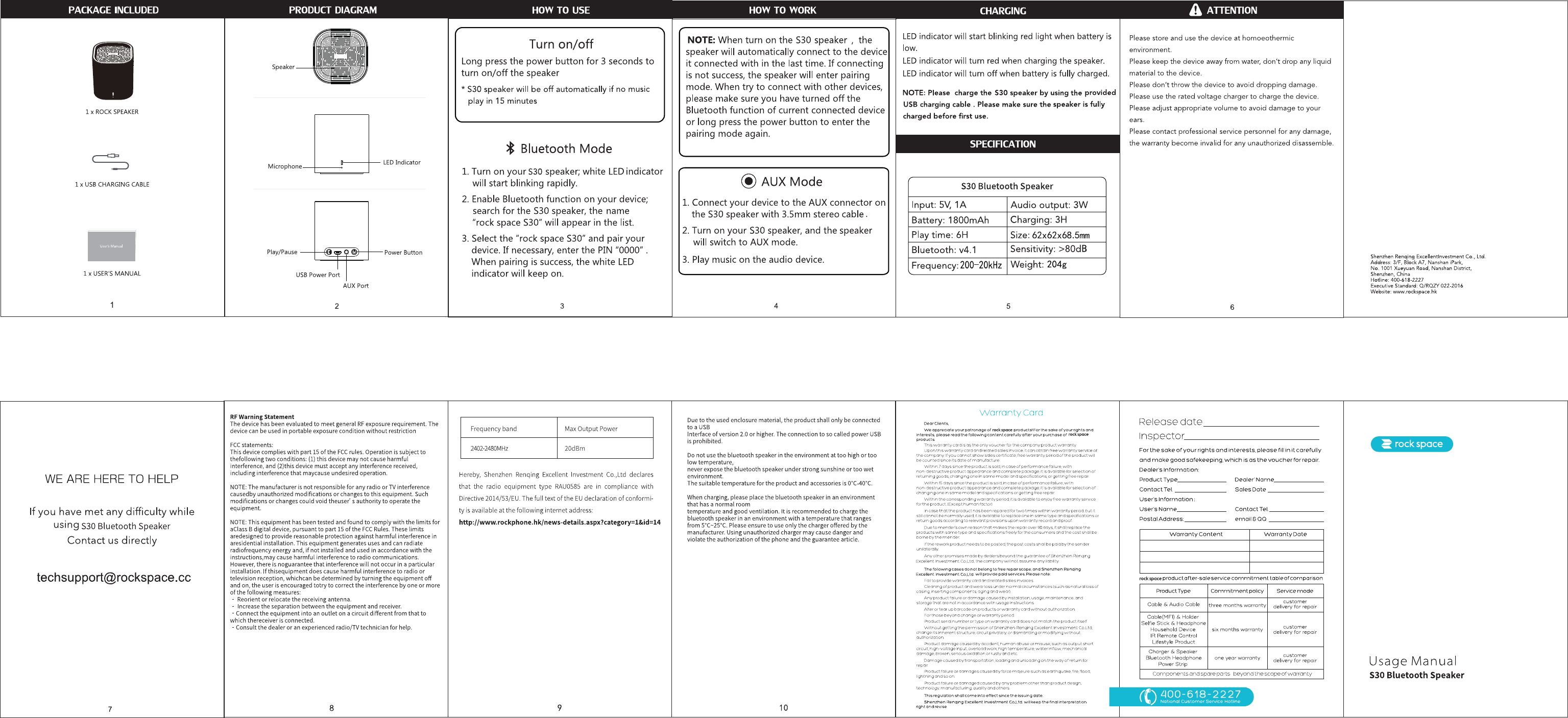 Shenzhen Renqing Excellent Investment Co.,Ltd Bluetooth Speaker Users Manual