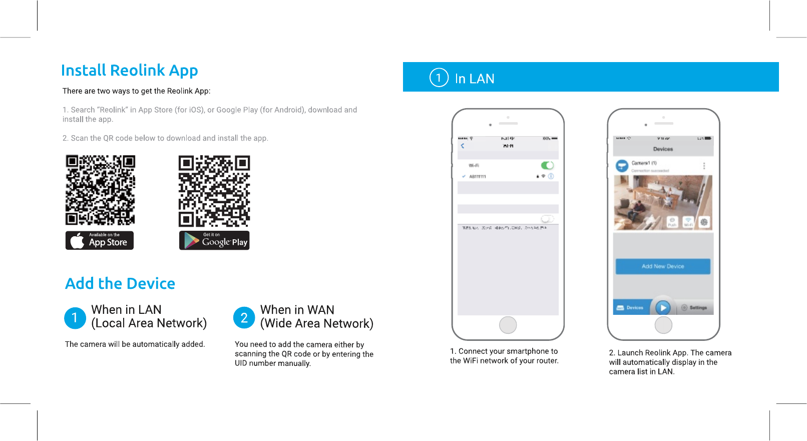 For initial setup, please connect the camera to your router LAN port with an Ethernet