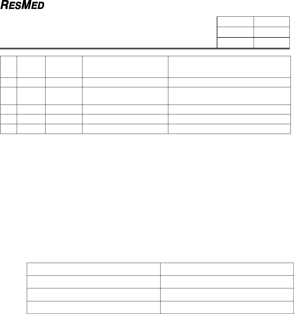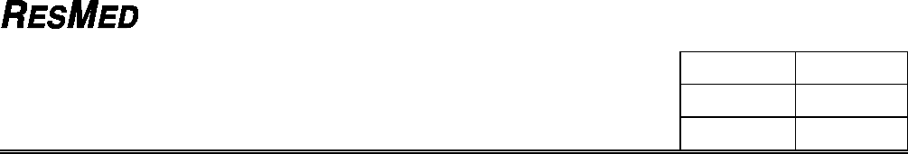 ResMed Confidential Proprietary Information, not to be reproduced or made available to third parties
