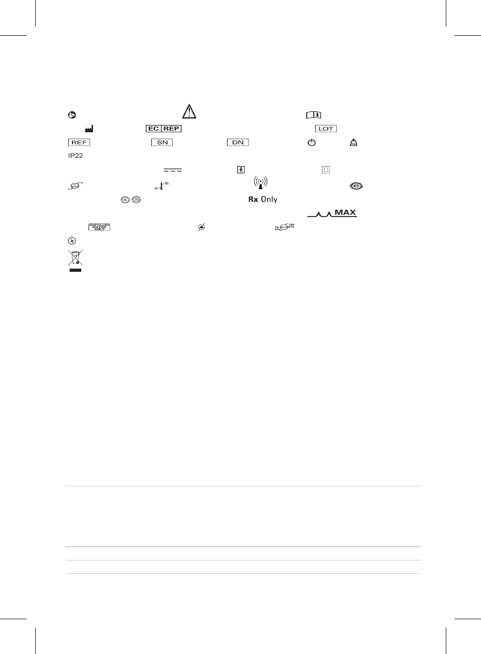 from specified orientation. Direct current. Type BF applied part. Class II equipment.