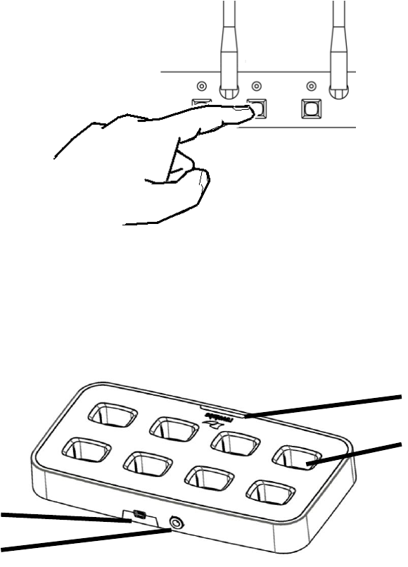 Charger Base DC power input port, Mini-USB, Proprietary 4 pin microphone charge jacks