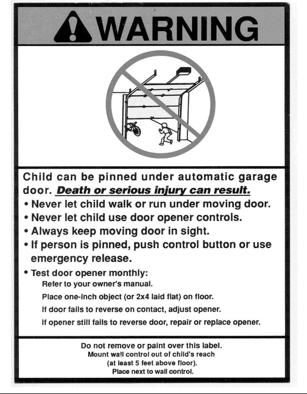 • Be sure to properly adjust the emergency reversal system. A poorly installed or adjusted emergency reversal