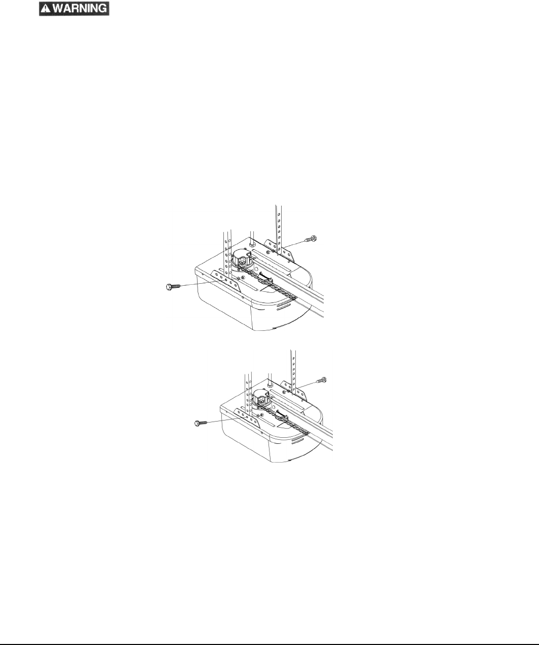 • Be sure to securely fasten the garage door opener to the garage door and to the ceiling. Failure to secure the