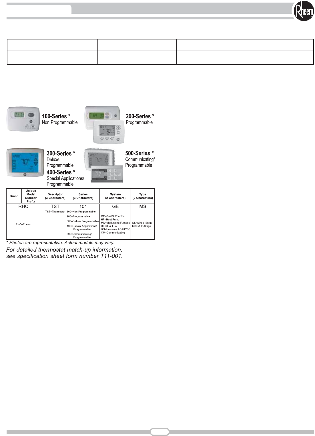 Thermostats RQNM/RQPM/RQRM See Thermostat Specification Sheet (T11-001)